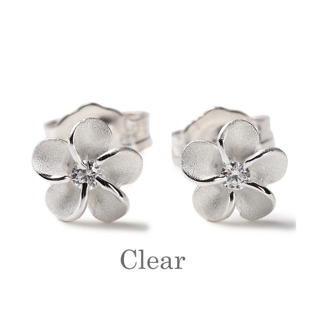 ピアス レディース スワロフスキー 安い シンプル ハワイアンジュエリー プルメリア キュービックジルコニア CZ ピンク ブルー パープル クリア レッド シルバー925