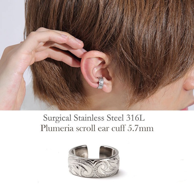 イヤーカフ メンズ アレルギーフリー ステンレス 316L ハワイアンジュエリー 5.7mm イアーカフ 男性 ピアス サージカル