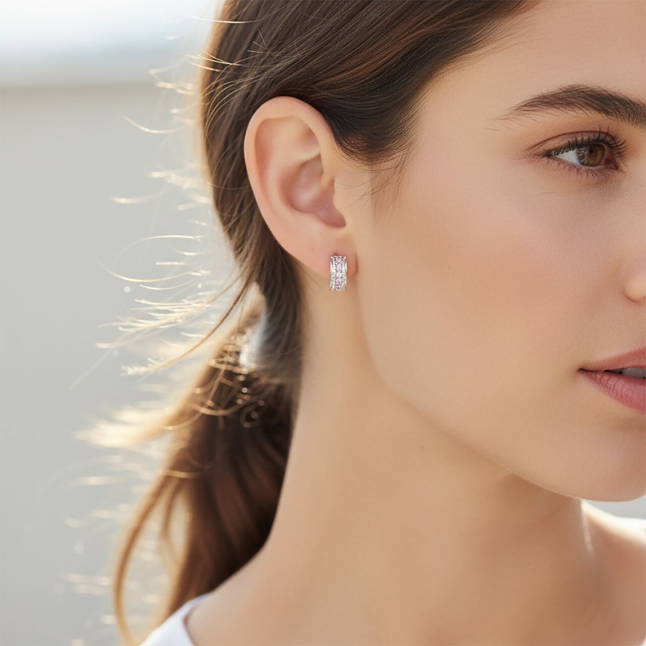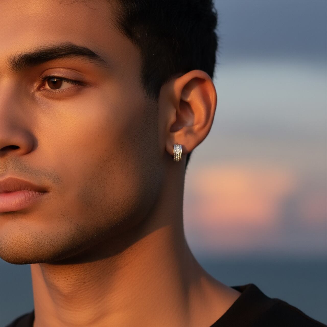 小さいながらもキュービックジルコニアがキラキラと輝く存在感のあるラグジュアリーなピアスのご紹介。男女問わずお使いいただける厚みのあるヘビーフープピアスでサイドには両面にハワイアンジュエリーならではのスクロール(波)が彫られ高級感たっぷり。