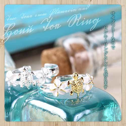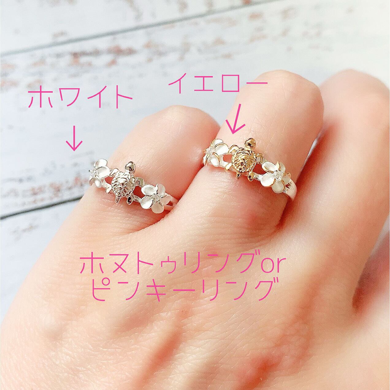 トゥリング ピンキーリング 指輪 ホヌ ウミガメ シルバー レディース 女性用 ハワイアンジュエリー イエロー ホワイト