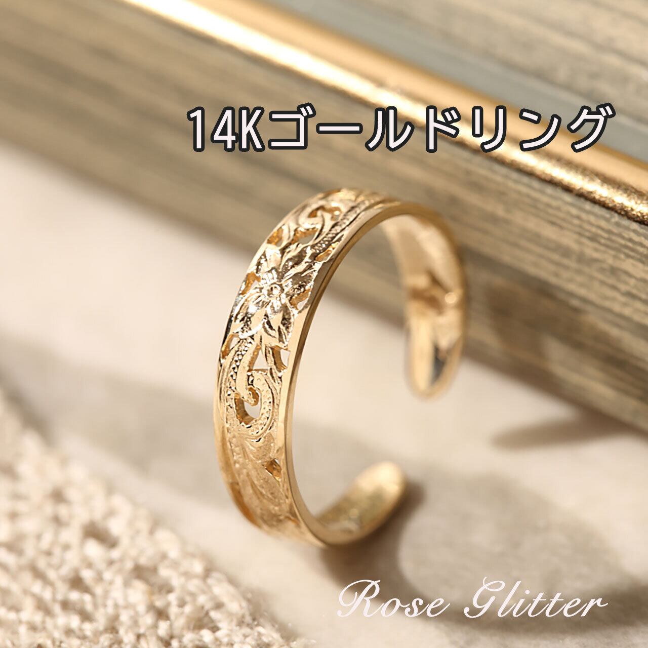 14Kイエローゴールド 透かし彫り プレゼントトゥリング ピンキーリング 指輪 ハワイジュエリー