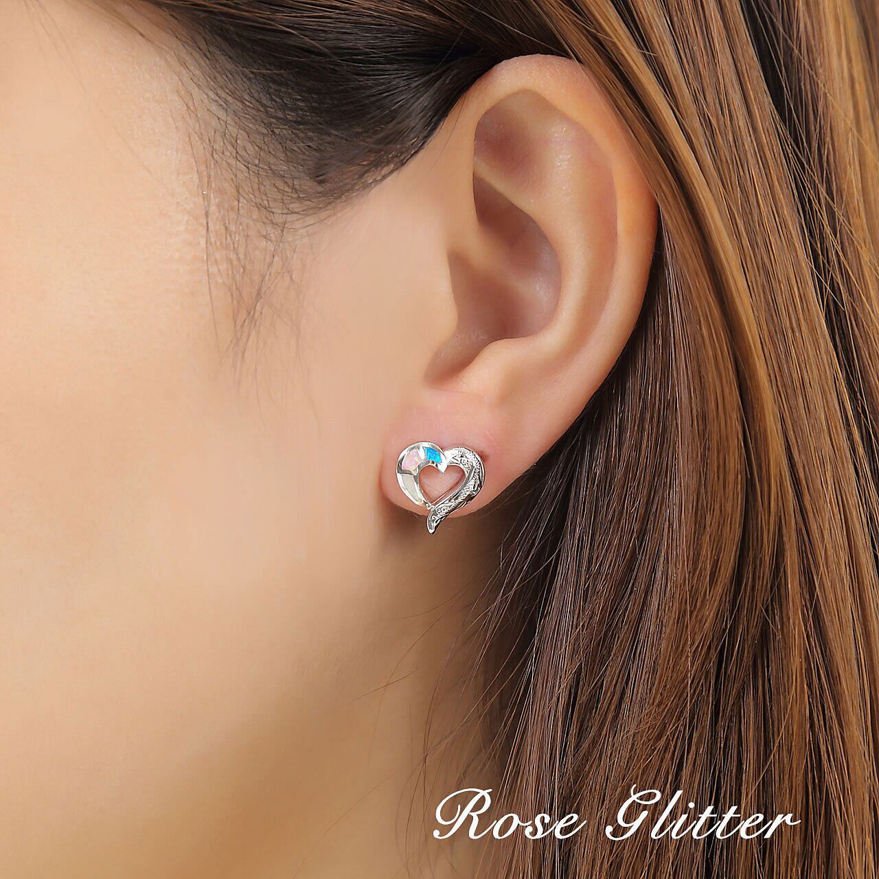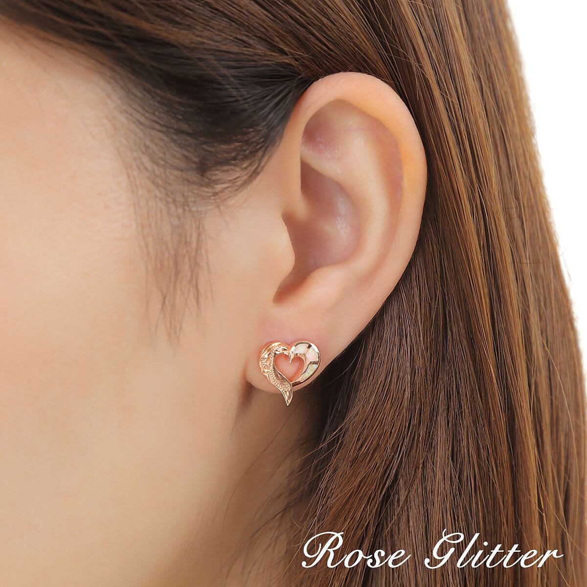 ハートモチーフに輝くオパールが、胸元と耳元を華やかに彩ります。