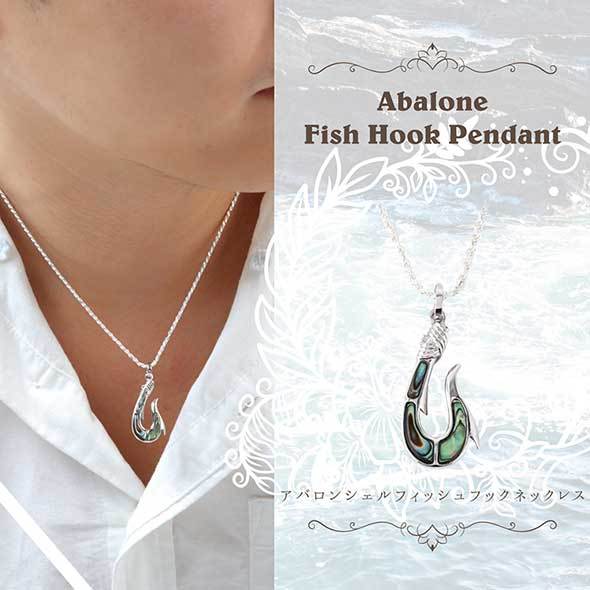ネックレス メンズ フィッシュフック ハワイアンジュエリー アバロン シェル チェーン付