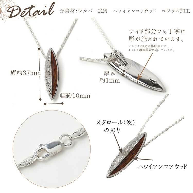ハワイアンジュエリー ネックレス メンズ サーフボード コアウッド かっこいい おしゃれ 人気 シルバー チェーン付 プレゼント 男性