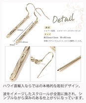 ゆらゆら揺れるフックタイプのおしゃれなピアス。女性らしく揺れるピアスにはハワイアンジュエリーならではのスクロール(波)が丁寧に彫られています。同じタイプのネックレス、ブレスレットも販売しています。プレゼントにもおすすめです。