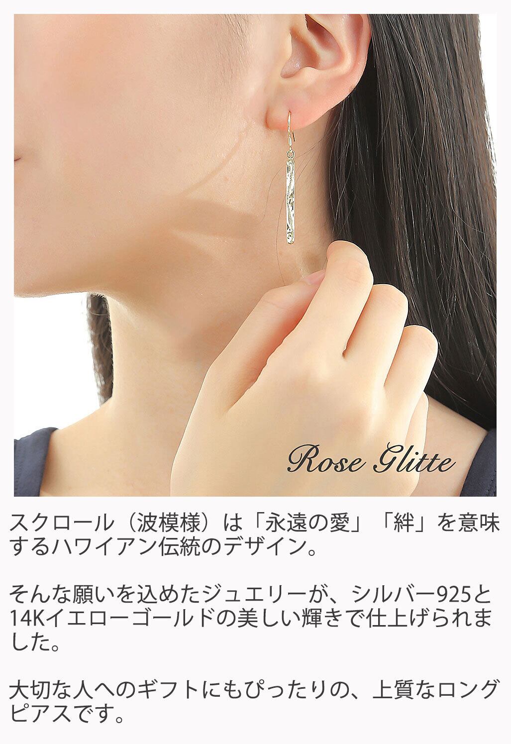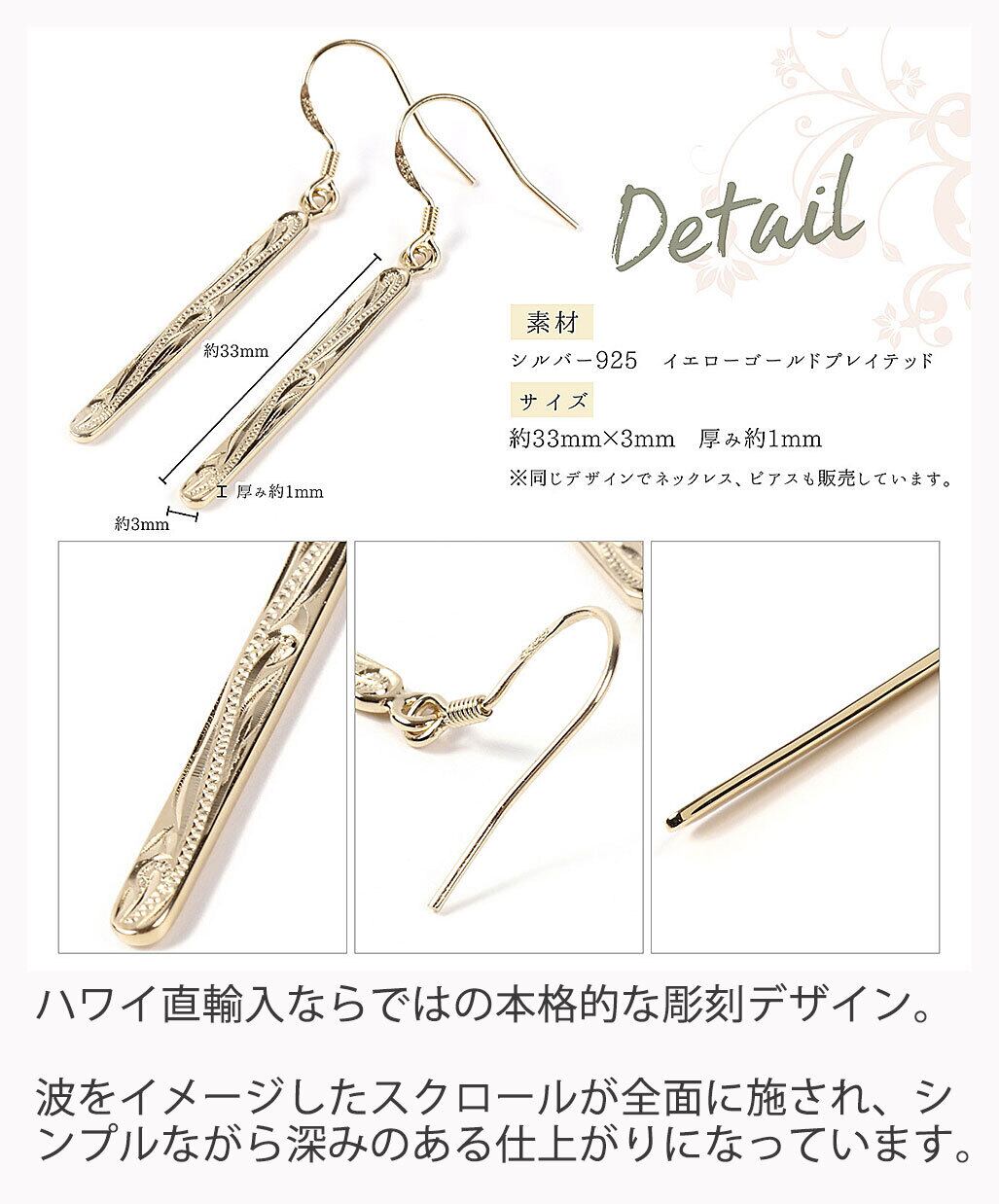 ジュエリーハワイアンジュエリー ピアス フック ゆらゆら 女性用 レディース シルバー 14Kイエローゴールド プレイテッド バー スクロール イアリング かわいい 人気 おしゃれ ハワイアンアクセサリー プレゼント 誕生日 記念日 ギフト