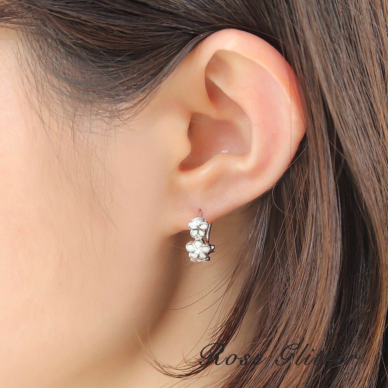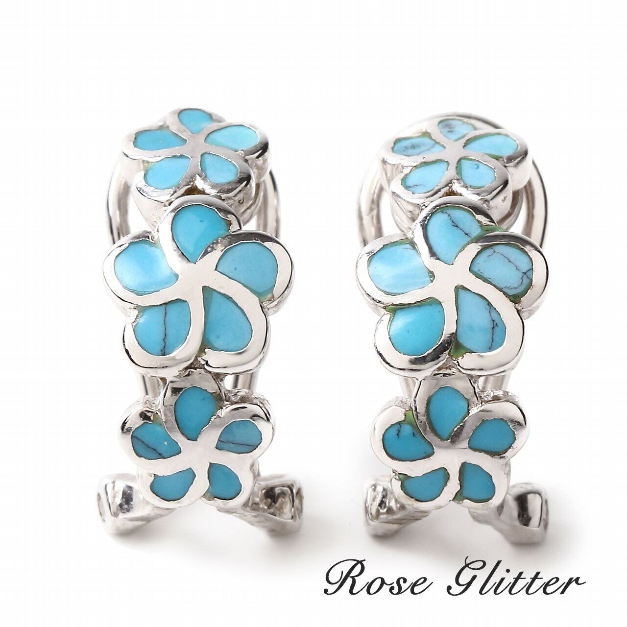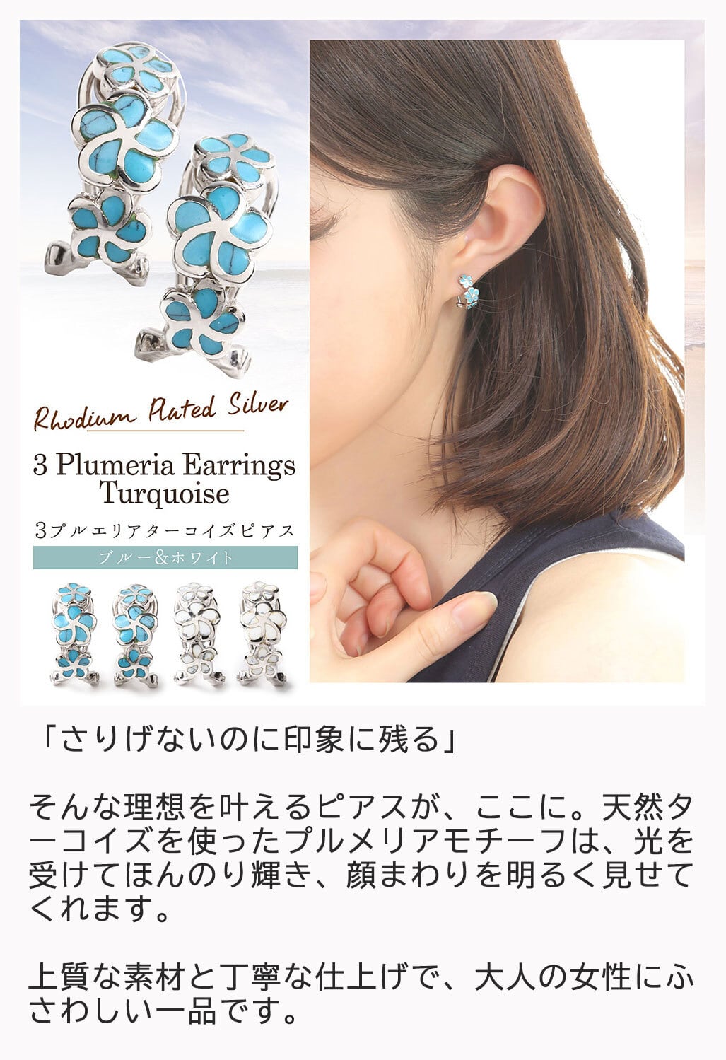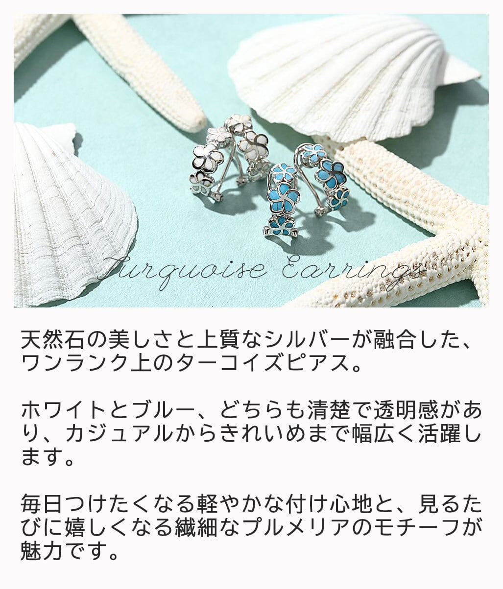 ハワイアンジュエリー ピアス 天然 ターコイズ レディース 女性 プルメリア ブルー ホワイト