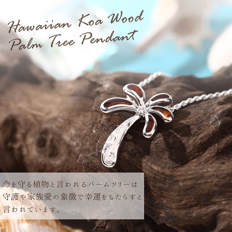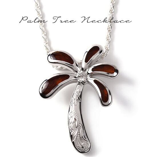 ネックレス ハワイアンジュエリー レディース メンズ パームツリー チェーン付き シルバー925 コアウッド ペンダント かわいい 人気 おしゃれ