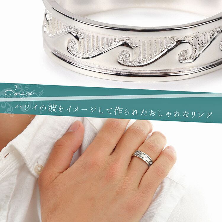 指輪 メンズ リング レディース 刻印無料 ハワイアンジュエリー 波 ウェーブ シルバー925
