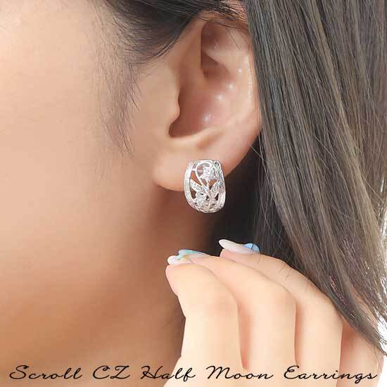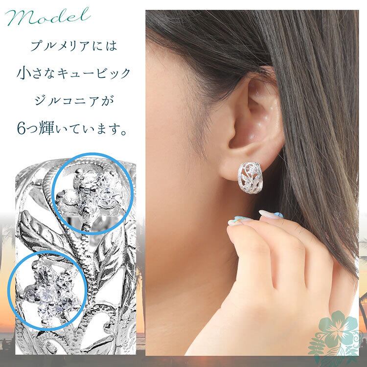 ピアス レディース 女性 シルバー925 キュービックジルコニア ハワイアンジュエリー ハーフムーン プルメリア かわいい おしゃれ Rose Glitter ローズグリッター