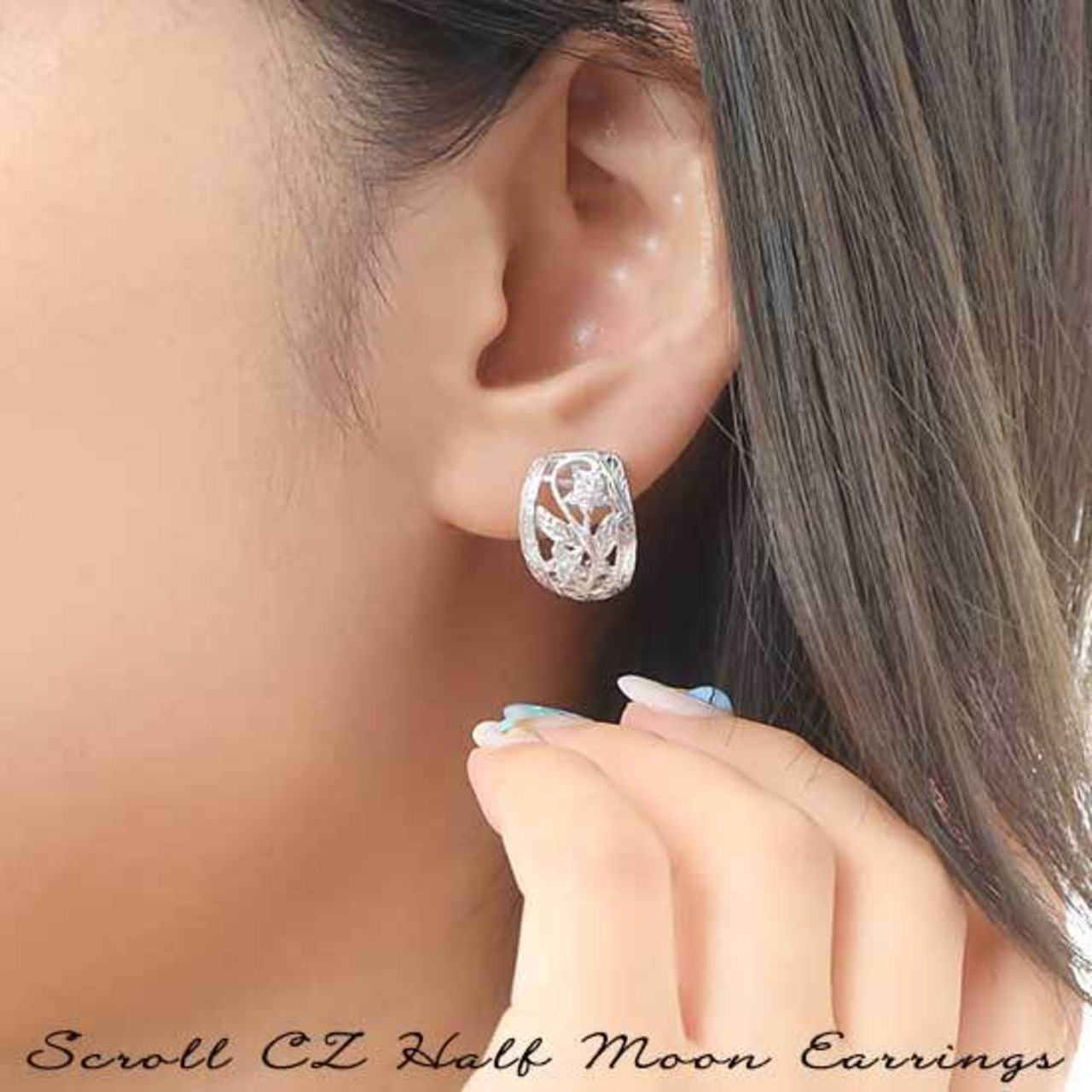 キュービックジルコニアがキラキラと輝いたおしゃれなピアスになります。ボリュームのある見た目ですが軽いピアスなので耳への負担はありません。ハワイアンジュエリーならではのスクロール(波)が彫られたワンランク上のピアスはプレゼントにもおすすめです。