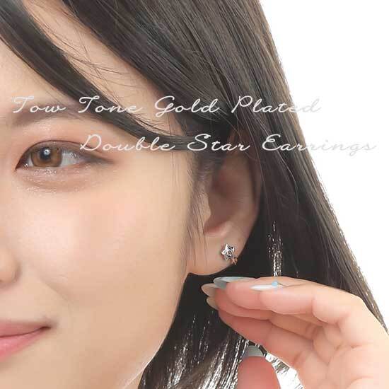 星が2つついた小さくかわいらしいピアスになります。流れ星のような星が耳にさりげなく。。星に願いを叶えたい女性におすすめです!