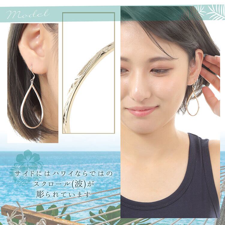 ピアス フープ 大きめ ハワイアンジュエリー ハンドメイド ティアドロップ しずく 涙 シルバー925 ゴールドコーティング 女性 レディース サークル 上品 BOX付
