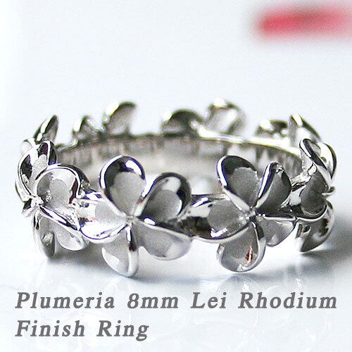 指輪 リング レディース ハワイアンジュエリー おしゃれ プルメリア レイ 8mm ホワイトゴールド シルバー かわいい 人気 安い プレゼント