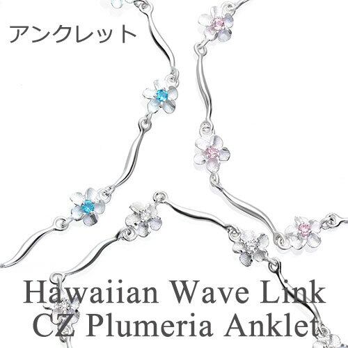 アンクレット ピンク ブルー クリア プルメリア ウェーブリンク かわいい 人気 安い キュービックジルコニア おしゃれ プレゼント 誕生日