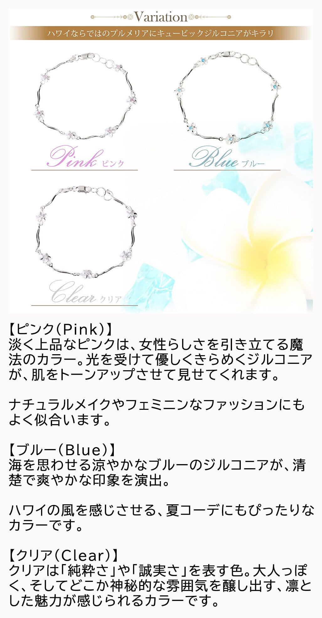 ブレスレット プルメリア ブルー ピンク クリア ウェーブリンク ブレス かわいい おしゃれ 人気 プレゼント 誕生日 記念日 彼女 友達 お祝い ハワイアンアクセサリー
