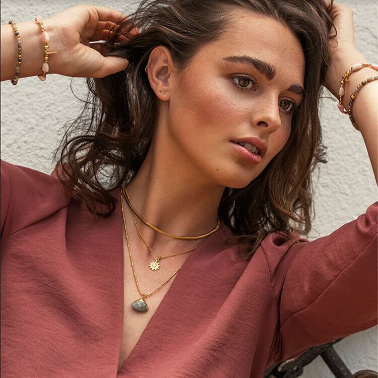 おしゃれでかわいい3連チェーンのネックレス。1つはシルバーとピンククオーツ、もう1つはゴールドにラブラドライト石で作られています。お好きな方をお選びください。チェーンはアレルギーフリーのステンレスなのでお肌が弱い方にも安心です。(すべての方にアレルギーが出ないとは限りません。ご了承ください。)