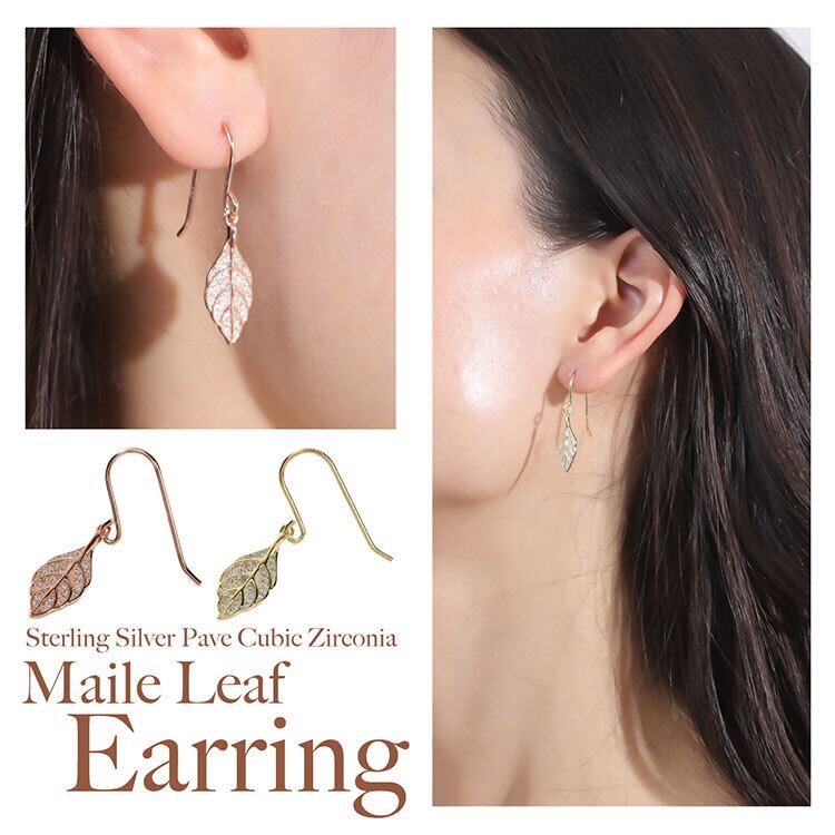 ピアス ゆらゆら レディース フックピアス シンプル ハワイアンジュエリー シルバー925 リーフ 葉っぱ CZ ピンク イエロー おしゃれ かわいい 人気