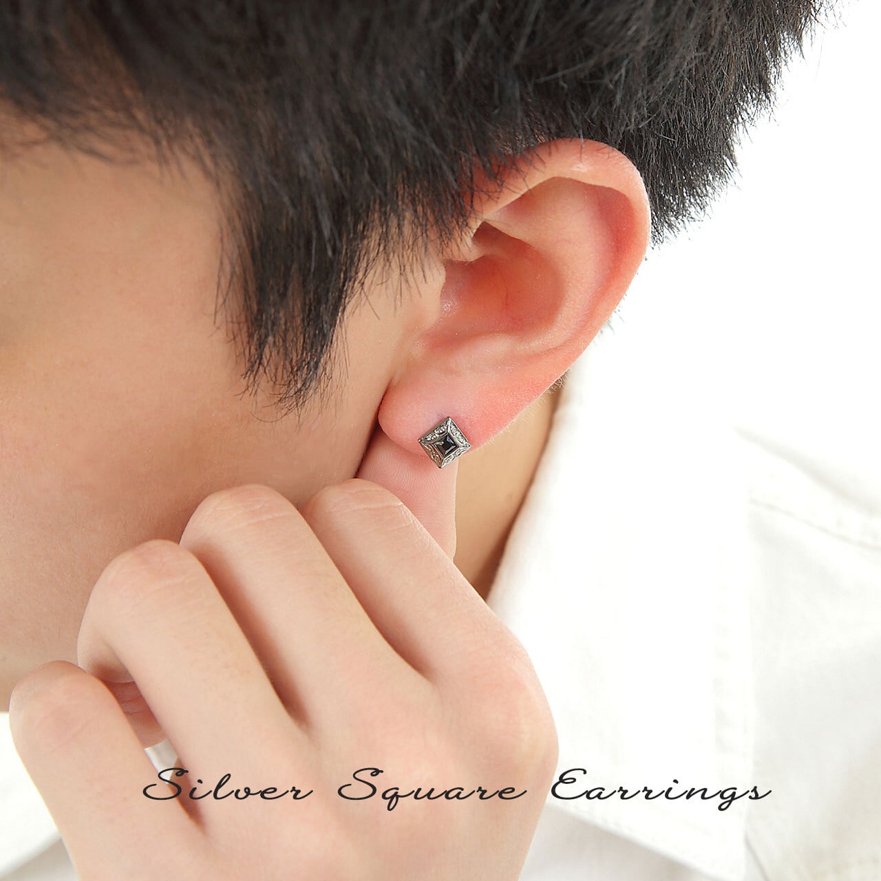 ピアス メンズ 両耳 スタッヅピアス おしゃれ イエロー ブラック キュービックジルコニア スクエア 男性 女性