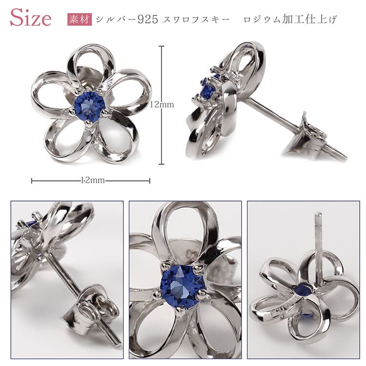 ピアス レディース スワロフスキー 安い シンプル ハワイアンジュエリー プルメリア キュービックジルコニア CZ ピンク ブルー パープル クリア レッド シルバー925