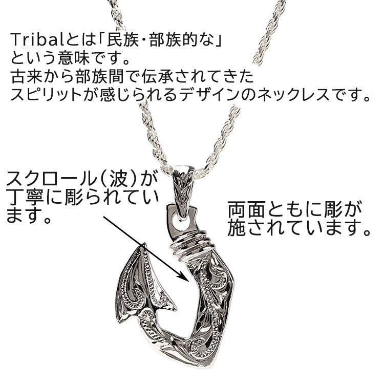 おしゃれでかっこいいトライバルデザインのハワイアンジュエリーネックレスです。幸せを釣り上げると言われているフィッシュフックのモチーフでつくられた縁起の良いネックレスはプレゼントにもおすすめです!こちらはハンドメイドで作られているため1つ1つ微妙に彫が違います。こちらハワイアンジュエリーと相性の良いシルバー925ロープチェーン付です。40,45,50cmからお選びください。「種類を選択してください」をタップするとお選びいただけます。