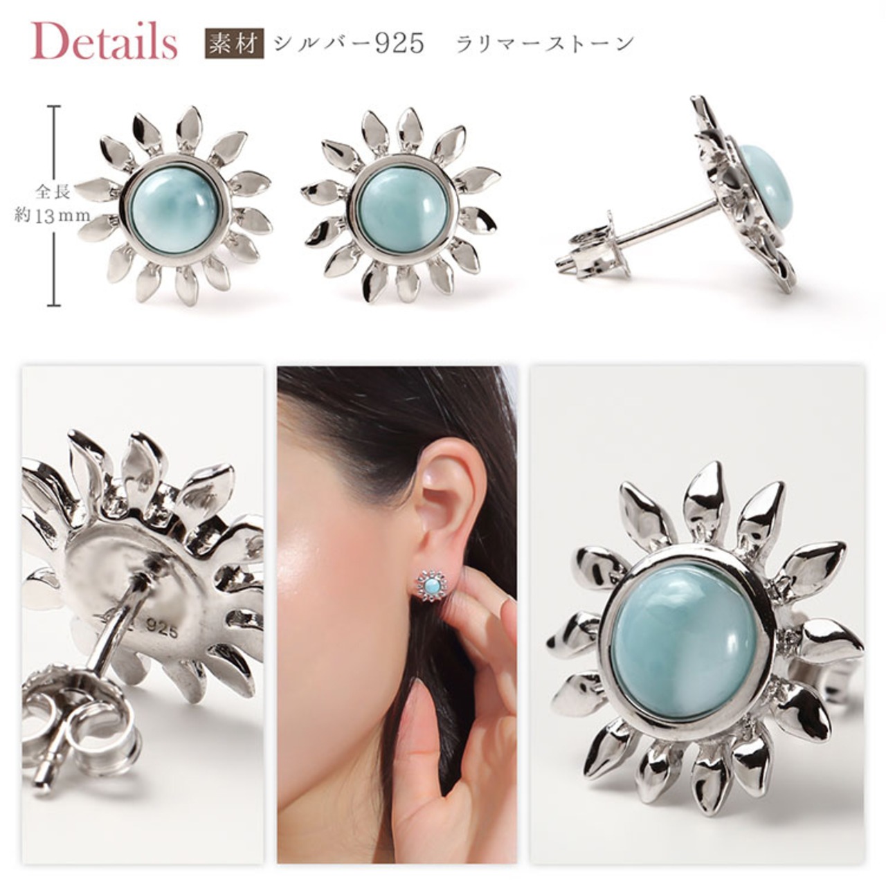 ピアス シンプル 女性 ハワイアンジュエリー ラリマーストーン 太陽 サンフラワー 向日葵 ひまわり ブルー スタッヅ 両耳 おしゃれ