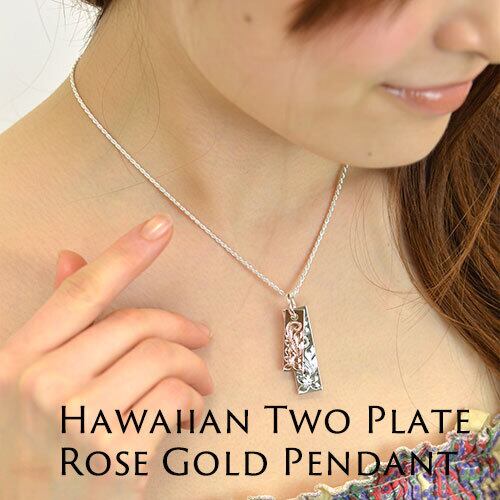 ネックレス レディース ハワイアンジュエリー チェーン付 BOX付 ダブルプレート ローズゴールド ペンダント チェーン付 おしゃれ 人気 プレゼント 誕生日 記念日 ギフト ハワイアンアクセサリー