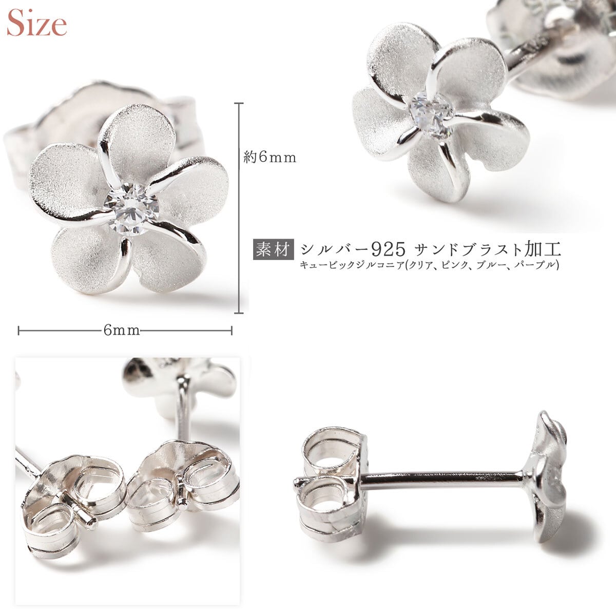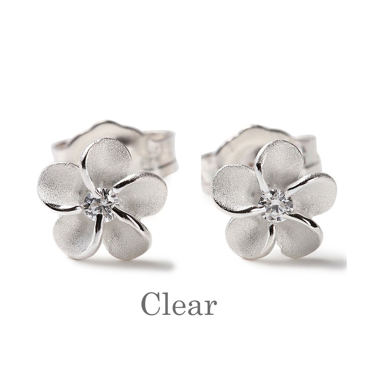 ハワイアンジュエリー ピアス プルメリア 6mm クリア ピンク ブルー パープル ジルコニア 花 両耳 イヤリング 安い 送料無料 かわいい ギフト
