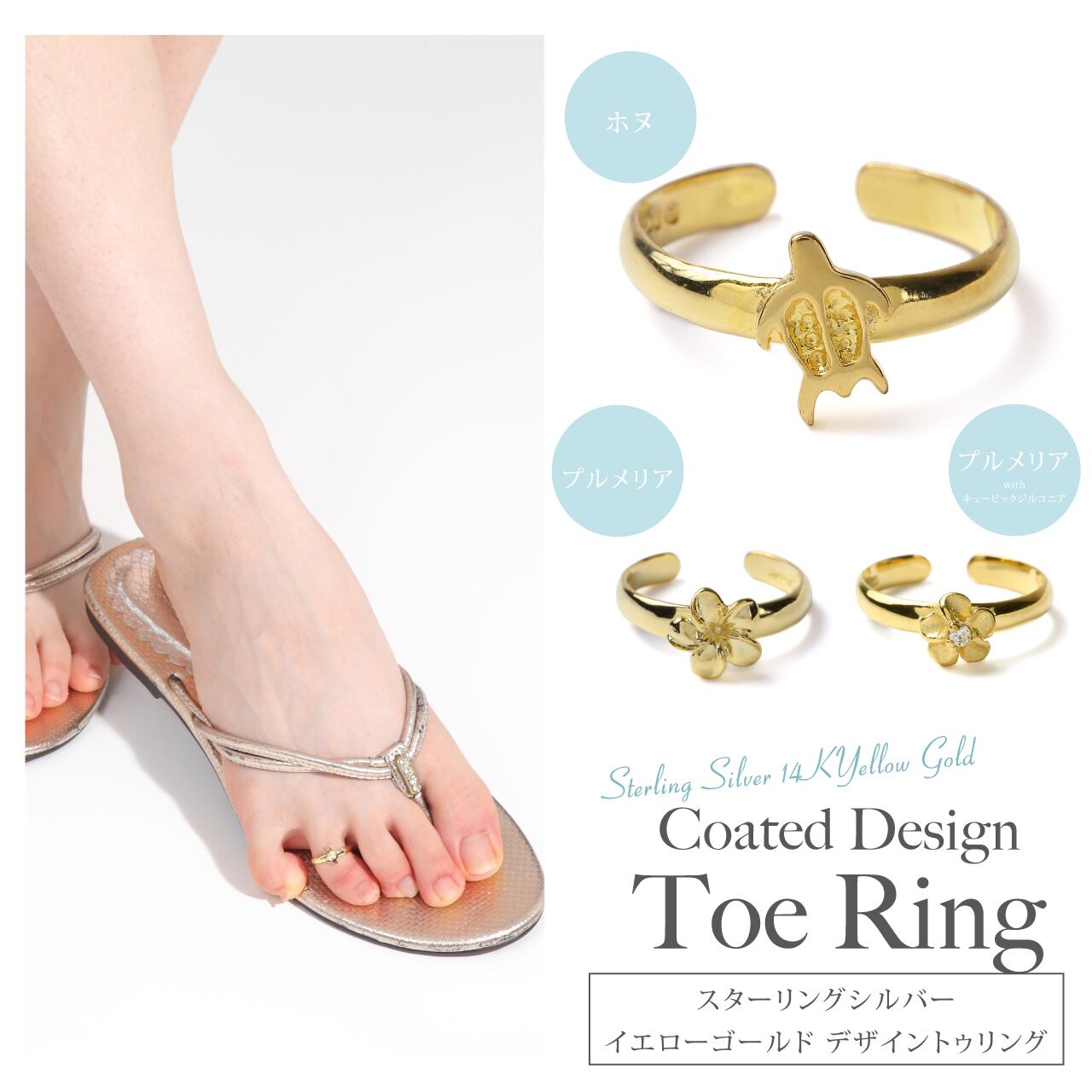 トゥリング ハワイアンジュエリー ピンキーリング 指輪 イエローゴールド 14K 安い シルバー925 かわいい 足 指 プルメリア ホヌ フラワー 花 プレゼント