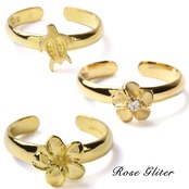 ピンキーリングとしてもお使いいただけるかわいいトゥリング。14Kイエローゴールドがコーティングされたワンランク上のリングです。ハワイならではのホヌとプルメリアからお選びください。こちらは調整可能なリングです。「種類を選択してください」をタップしてお好きな種類をお選びください。