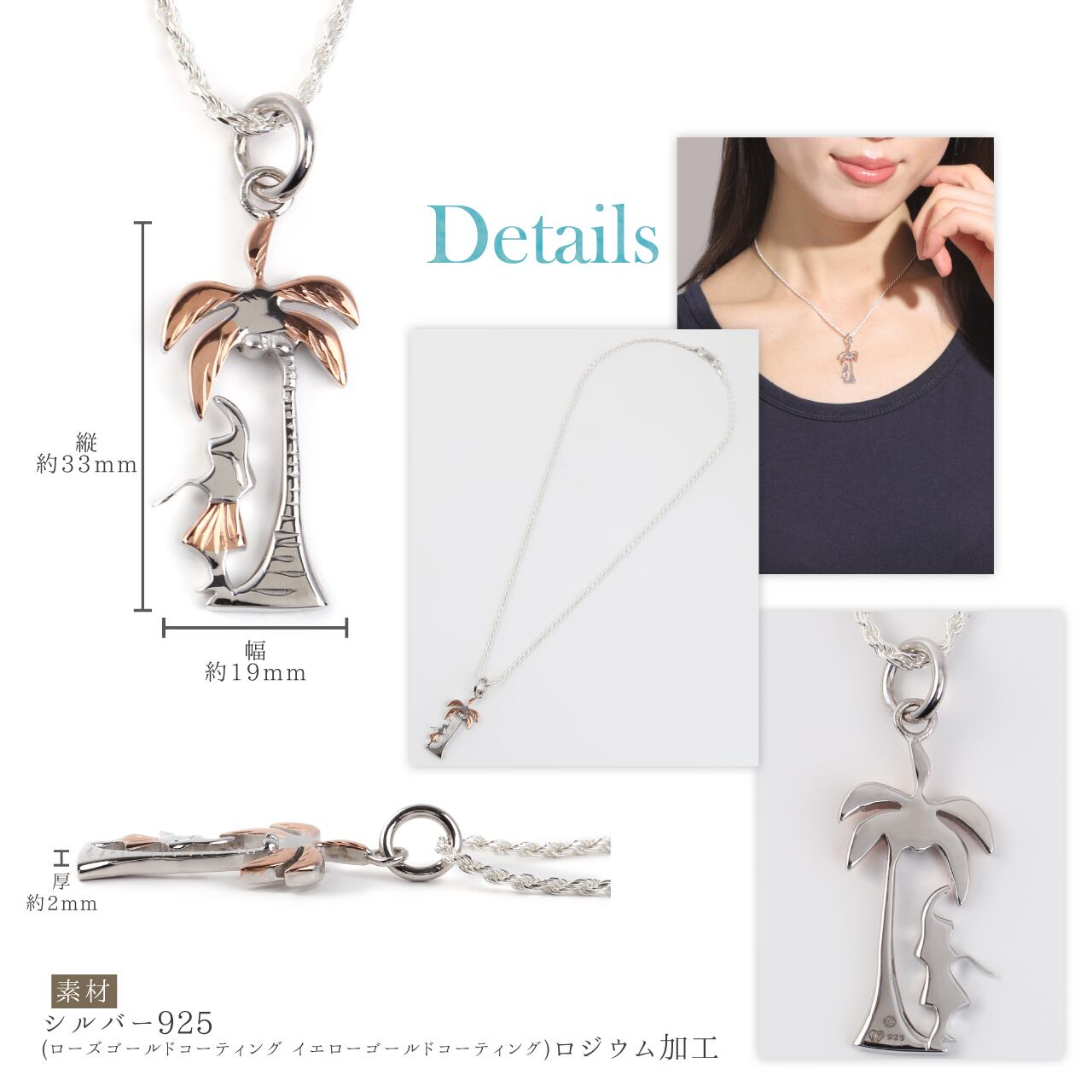 ハワイアンジュエリー ネックレス パームツリー レディース フラダンサー フラ シルバー ローズ イエロー チェーン付 カヒコ ペンダント チェーン付 ハワイアンアクセサリー