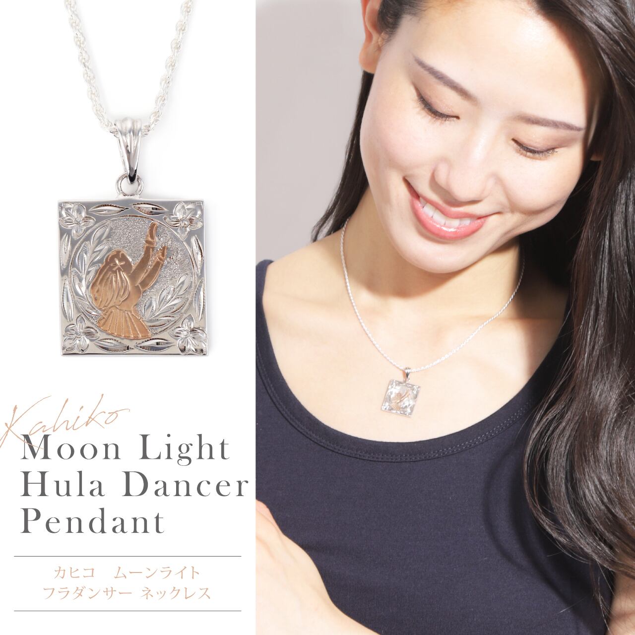 ハワイアンジュエリー ネックレス レディース フラダンサー フラ シルバー ローズ イエロー チェーン付 カヒコ ムーン スクエア ペンダント チェーン付 ハワイアンアクセサリー