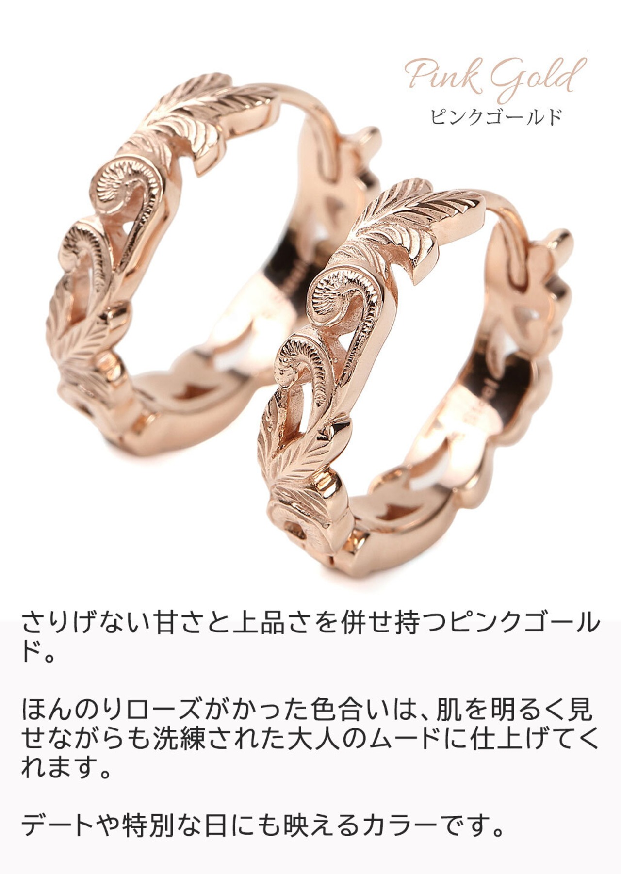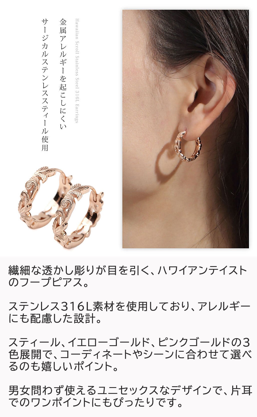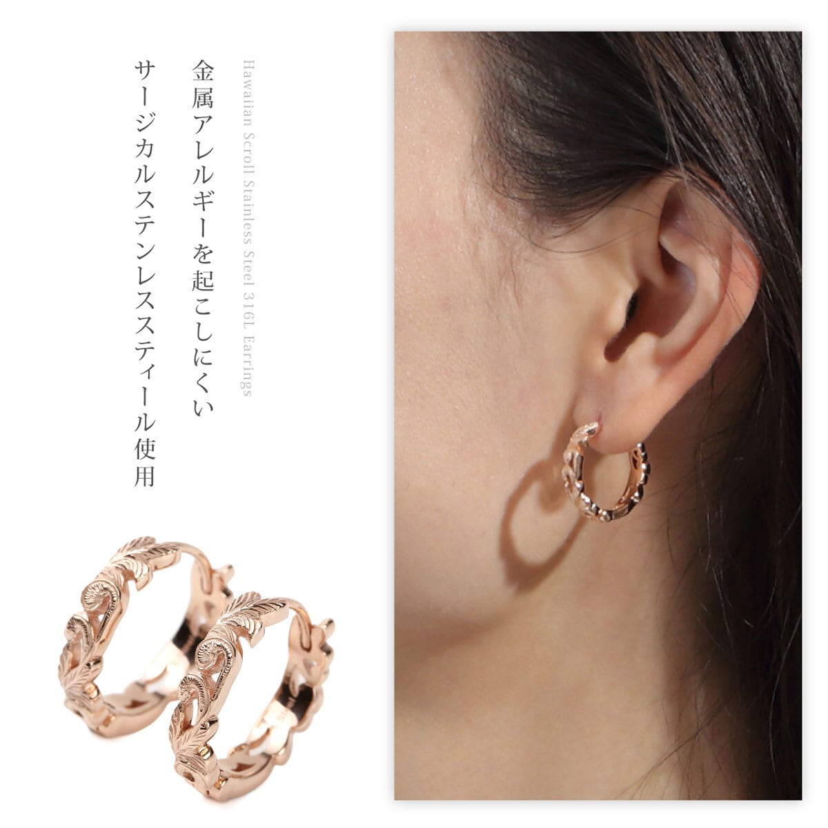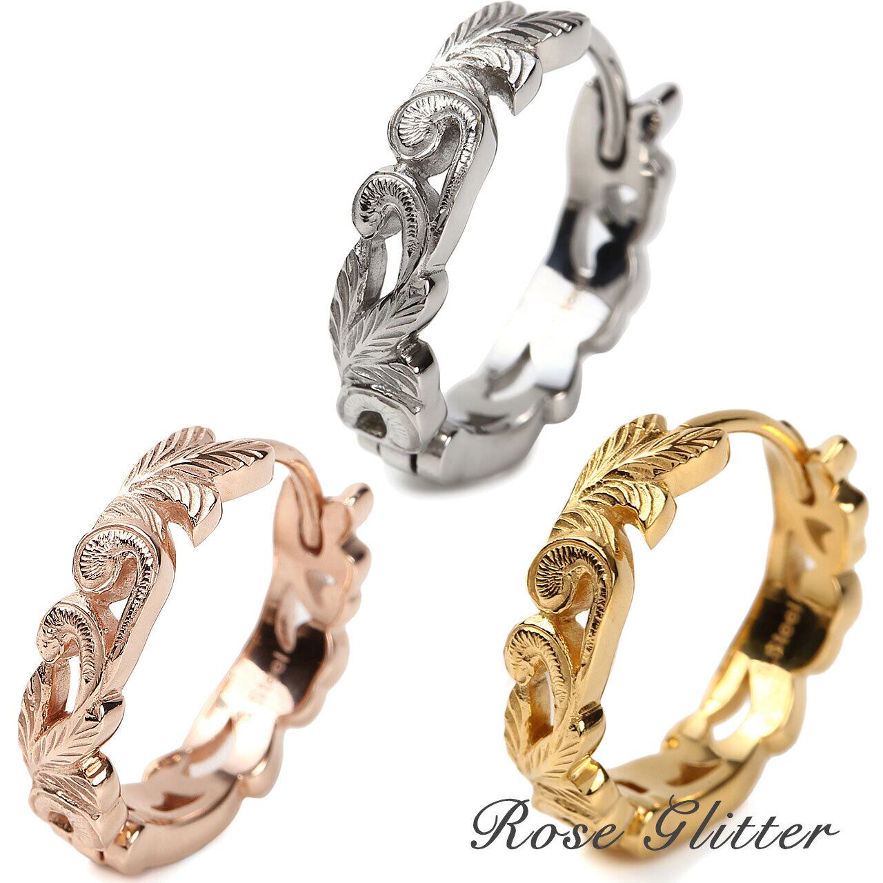 ピアス 片耳 金属アレルギー 医療用ステンレス ハワイアンジュエリー 透かし スクロース ピンクゴールド 24金 メンズ レディース サージカルステンレス316L 安い 人気