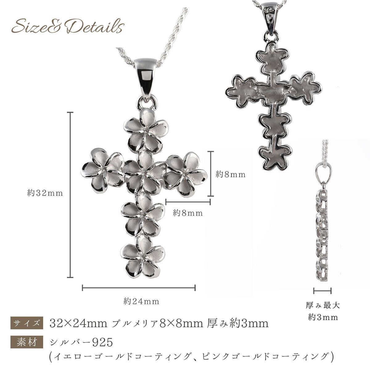 ネックレス クロス 十字架 ピンク イエロー シルバー レディース 女性用 プルメリア ハワイアンジュエリー チェーン付き