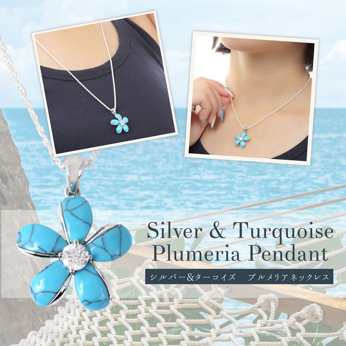 ネックレス ターコイズ プルメリア ハワイアンジュエリー レディース 女性用 キュービックジルコニア チェーン付き かわいい 安い 誕生日 プレゼント クリスマス ホワイトデー