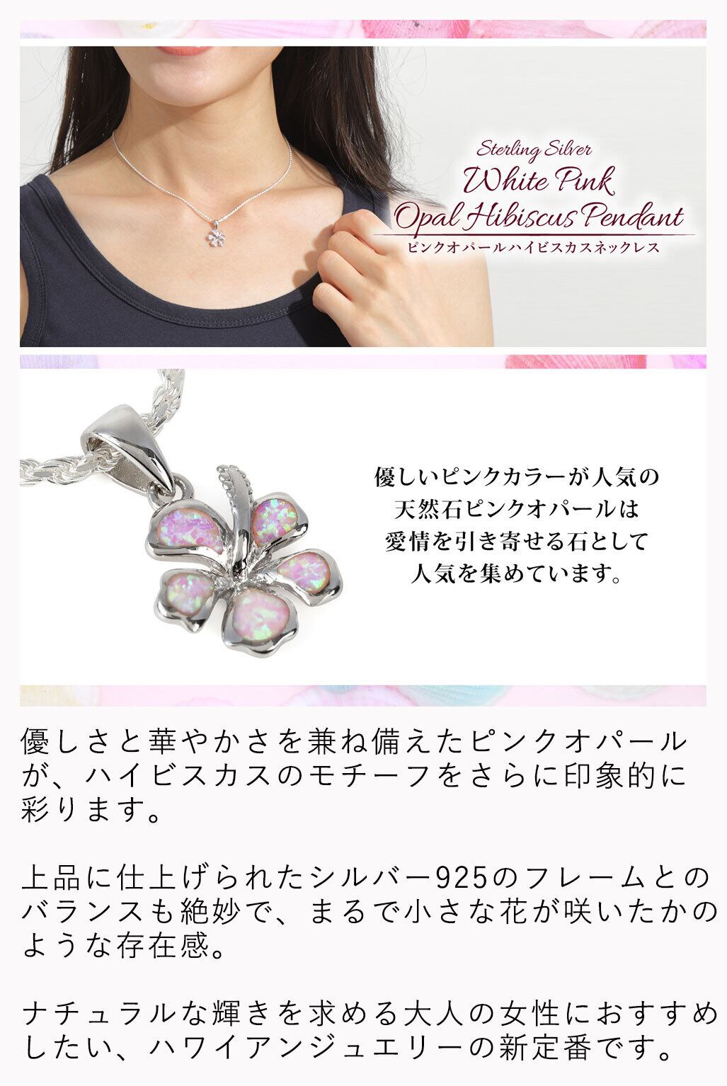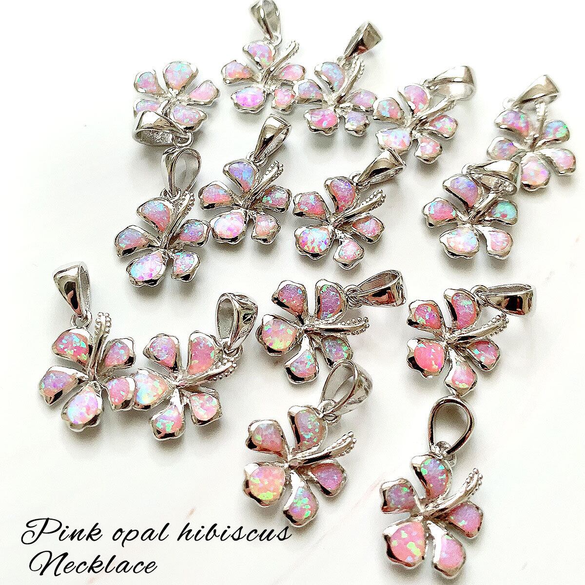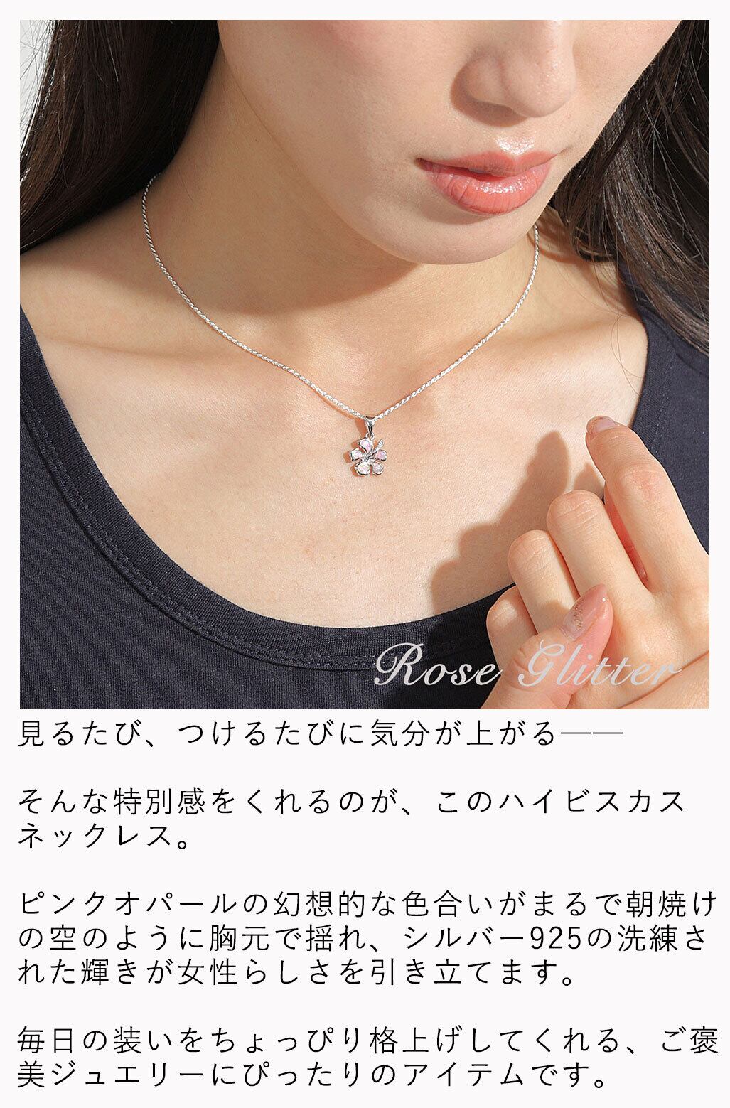 ハイビスカスハイビスカス ネックレス ハワイアンジュエリー ピンク オパール チェーン付き レディース 女性用 シルバー925 かわいい ハワイアンネックレス フラワーネックレス 人気 安い クリスマス おしゃれ ローズグリッター