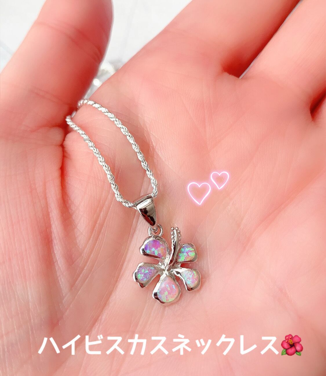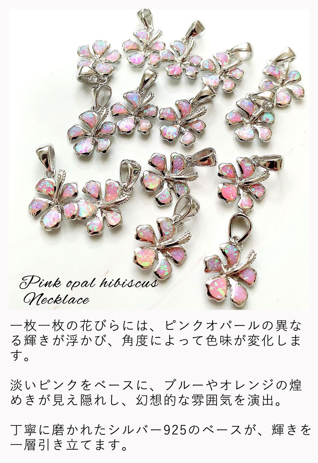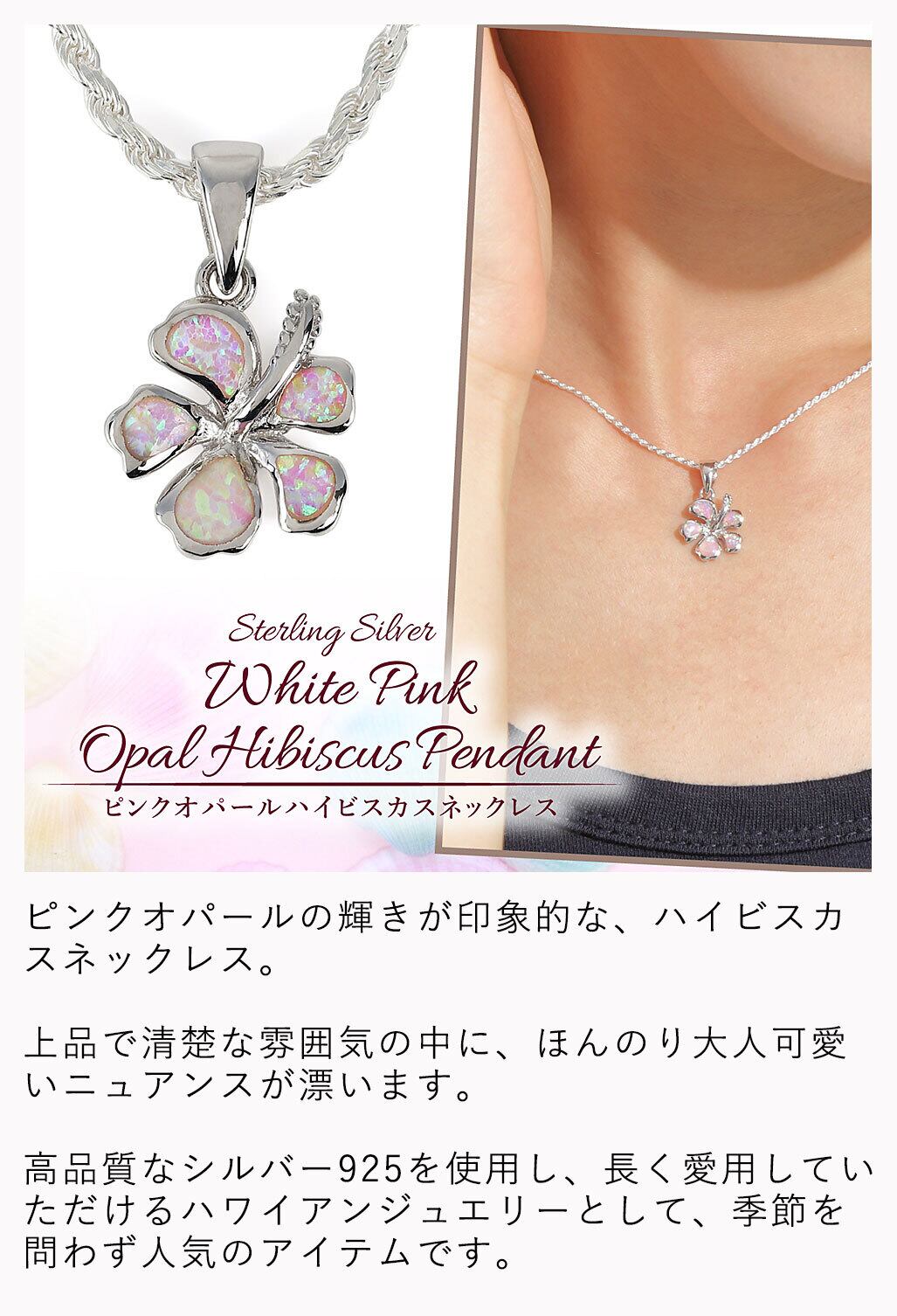 ハイビスカスハイビスカス ネックレス ハワイアンジュエリー ピンク オパール チェーン付き レディース 女性用 シルバー925 かわいい ハワイアンネックレス フラワーネックレス 人気 安い クリスマス おしゃれ ローズグリッター