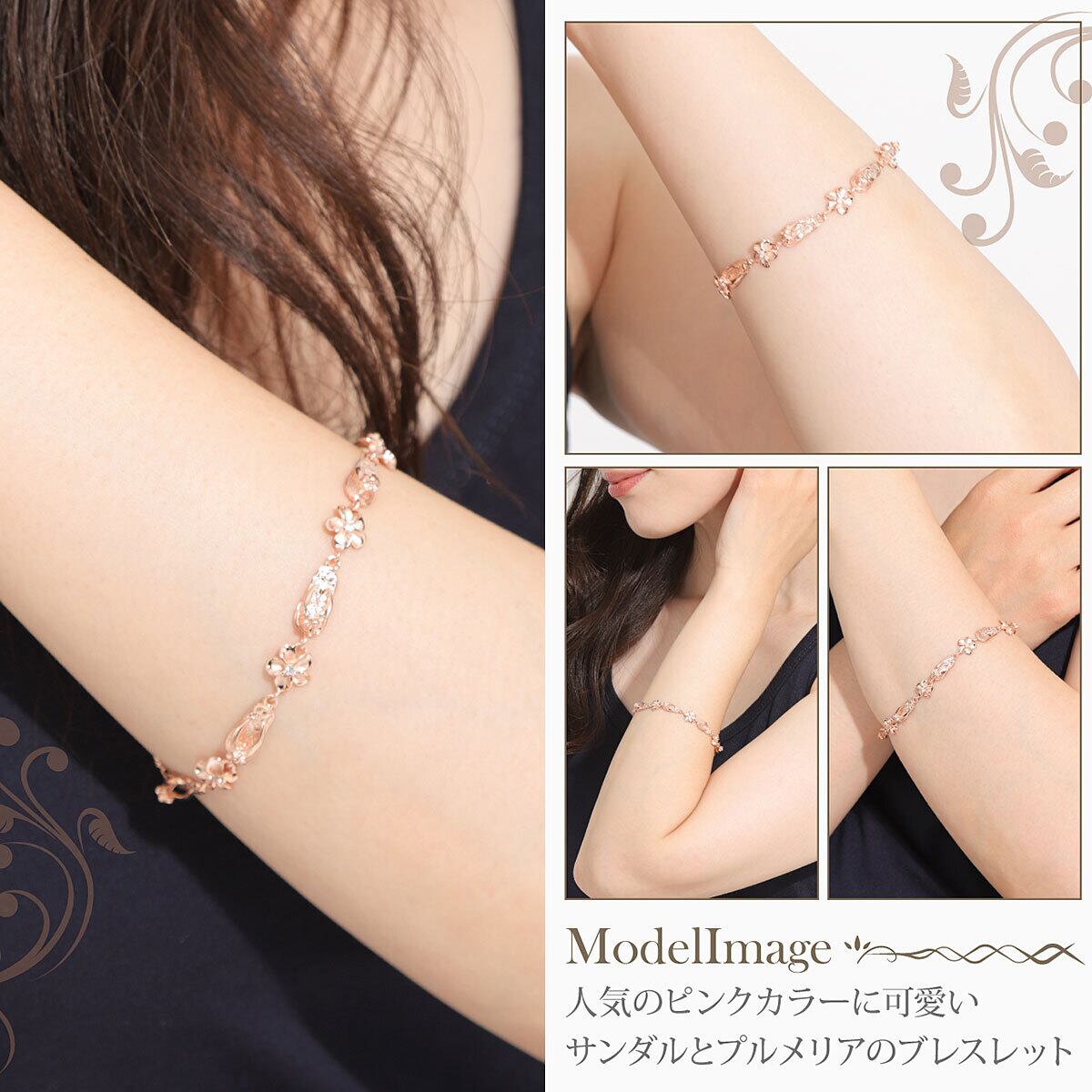 ブレスレット レディース ピンクゴールド ハワイアンジュエリー 女性用 プルメリア CZ サンダル キュービックコニア シルバー ハワイアンアクセサリー おしゃれ 高級 プレゼント 誕生日 彼女 記念日 ジュエリー
