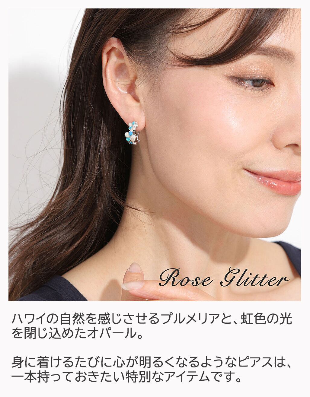 ハワイの自然を感じさせるプルメリアモチーフと、美しく光を反射するオパールが出会った、上品で華やかなシルバー925製ピアス。