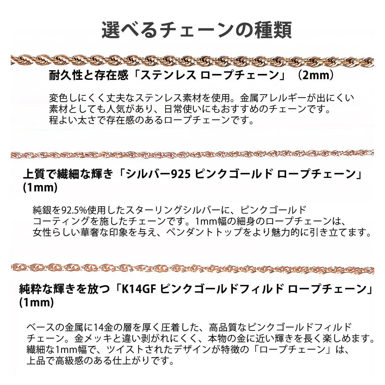 ペンダントトップのみのご購入も可能なため、お手持ちのチェーンと合わせてお楽しみいただくこともできます。プレゼントとして贈る場合は、すぐに身につけられるチェーン付きがおすすめです。40,45cmからお選びください。 「種類を選択してください」をタップするとお選びいただけます。