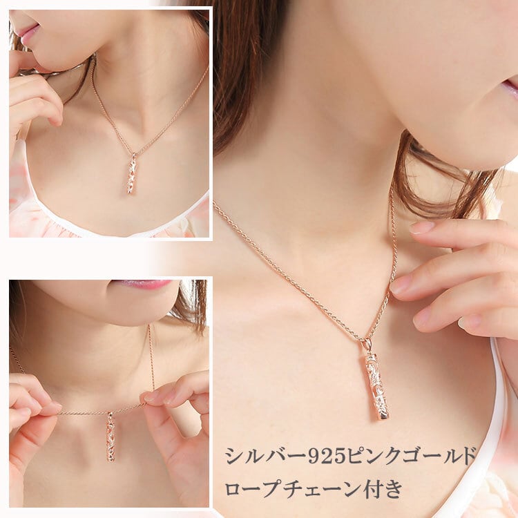 ネックレス レディース ハワイアンジュエリー ペンダント 透かし彫り チューブペンダント ピンクゴールド チェーン付 かわいい 人気 プレゼント 誕生日 彼女