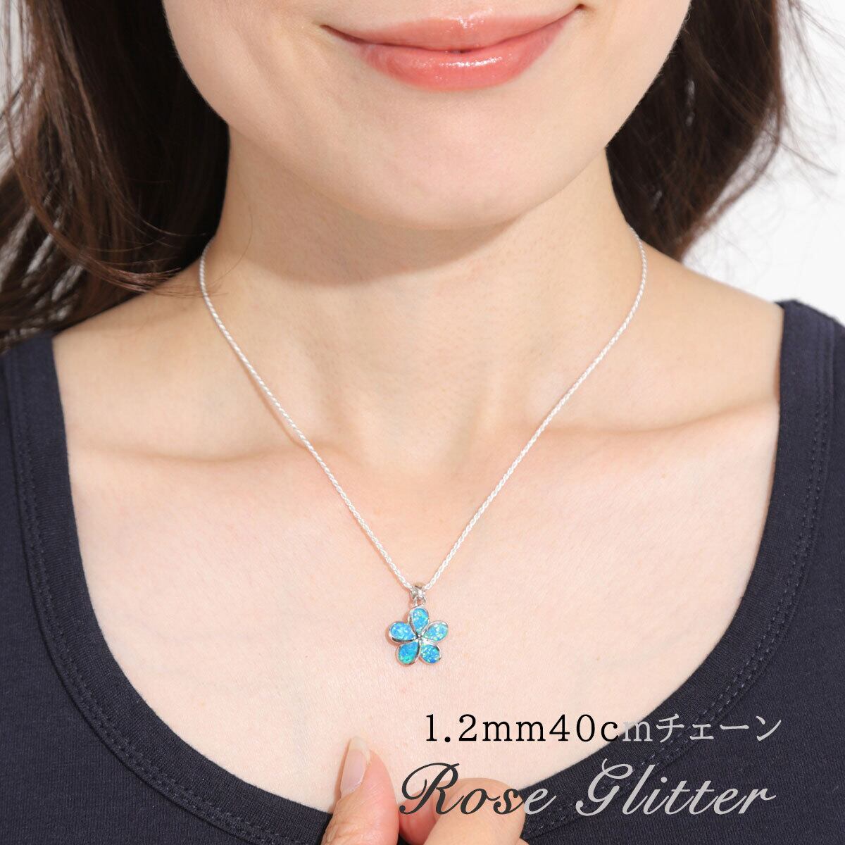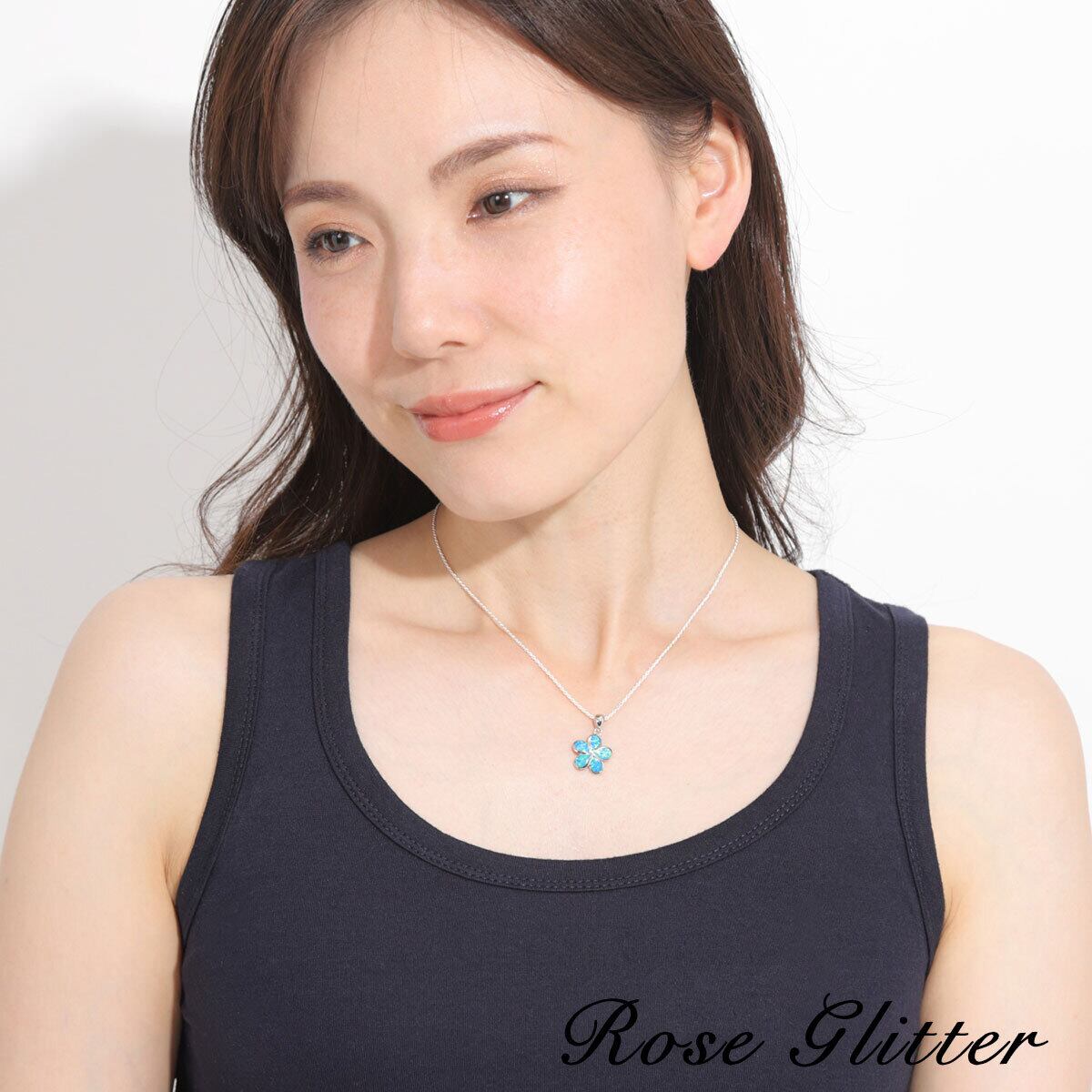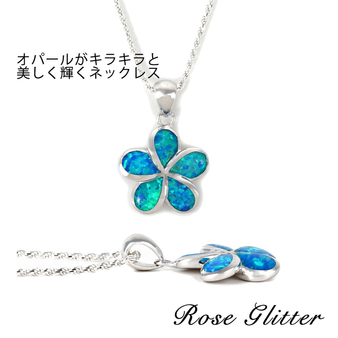 ネックレス プルメリア オパール ブルー ハワイアンジュエリー 女性 レディース