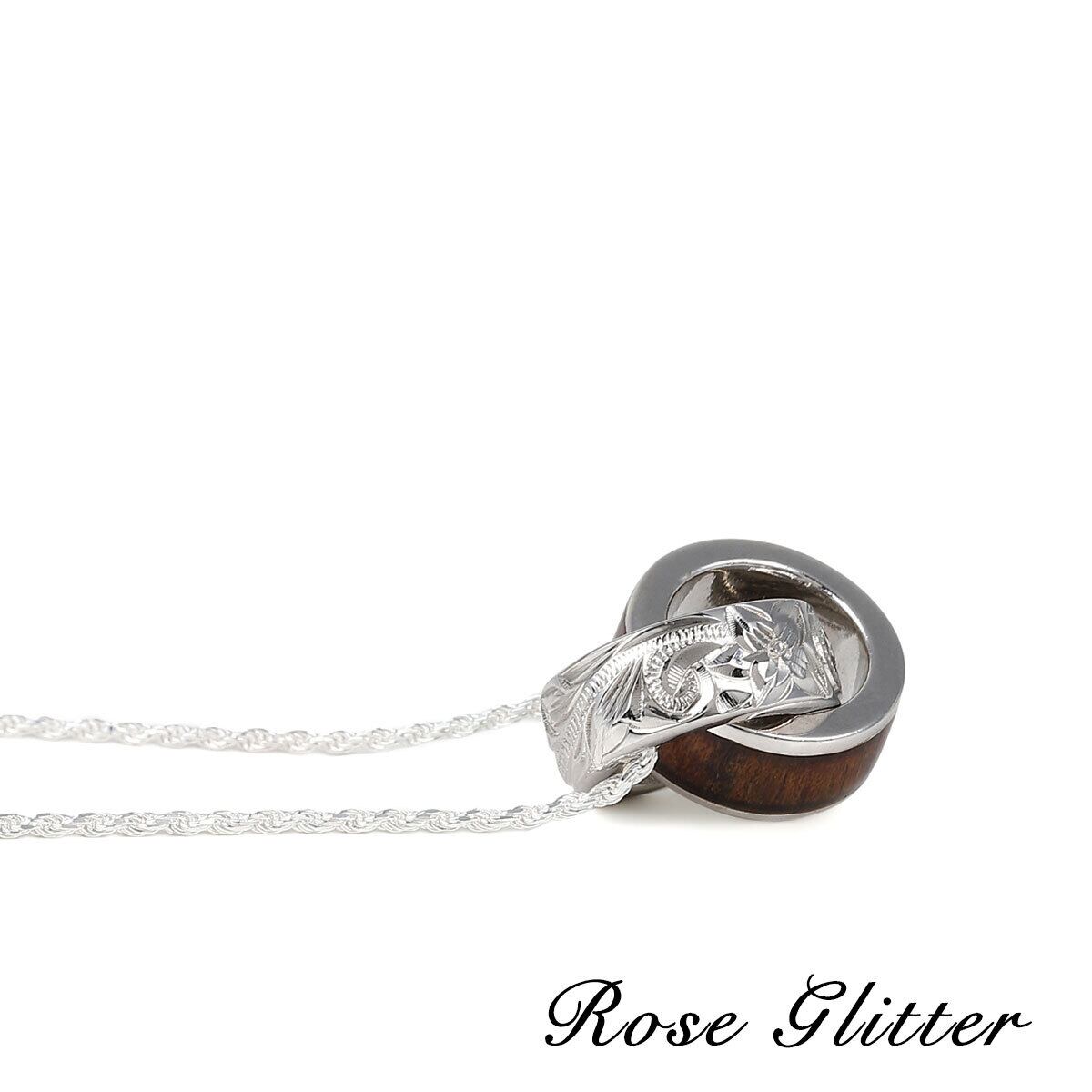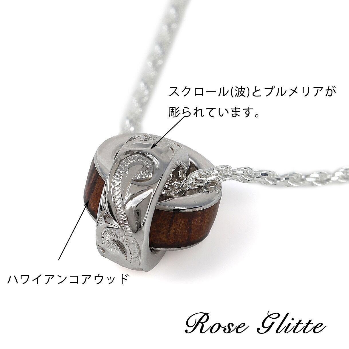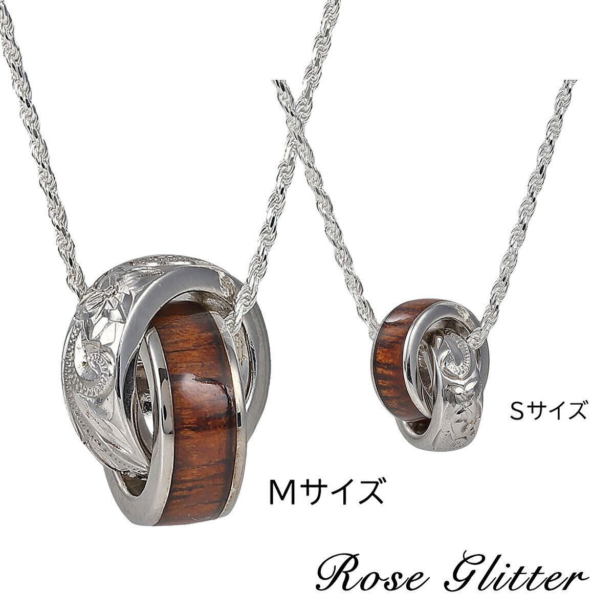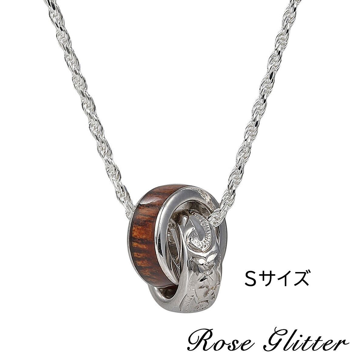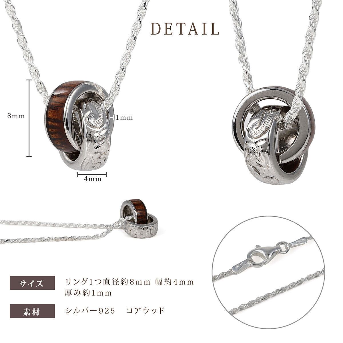 ネックレス ダブルリング 2連リング Sサイズ チェーン付き コアウッド 小さ目 シルバー925 プルメリア スクロール 波 女性 レディース ハワイアンジュエリー ハワイアンネックレス ウッドネックレス