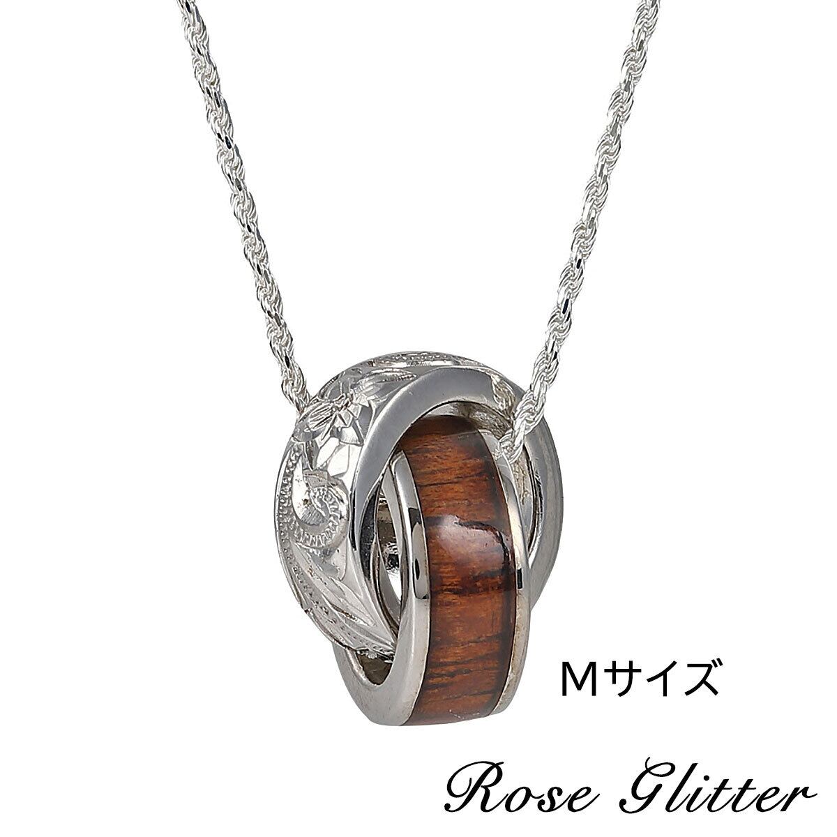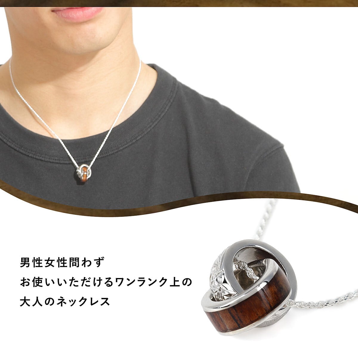 ネックレス メンズ 男性 Mサイズ チェーン付き ダブルリング 2連リング コアウッド シルバー925 プルメリア スクロール 波 女性 レディース ハワイアンジュエリー ハワイアンネックレス ウッドネックレス おしゃれ かっこいい