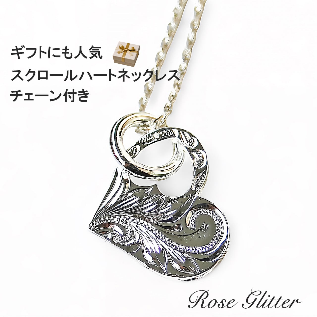 ハワイアンジュエリー ネックレス シルバー925 スクロール ハート ペンダント レディース チェーン付き ハワイ直輸入 大切な日のギフトに 誕生日 クリスマス 記念日 プレゼント 特別な贈り物 Rose Glitter