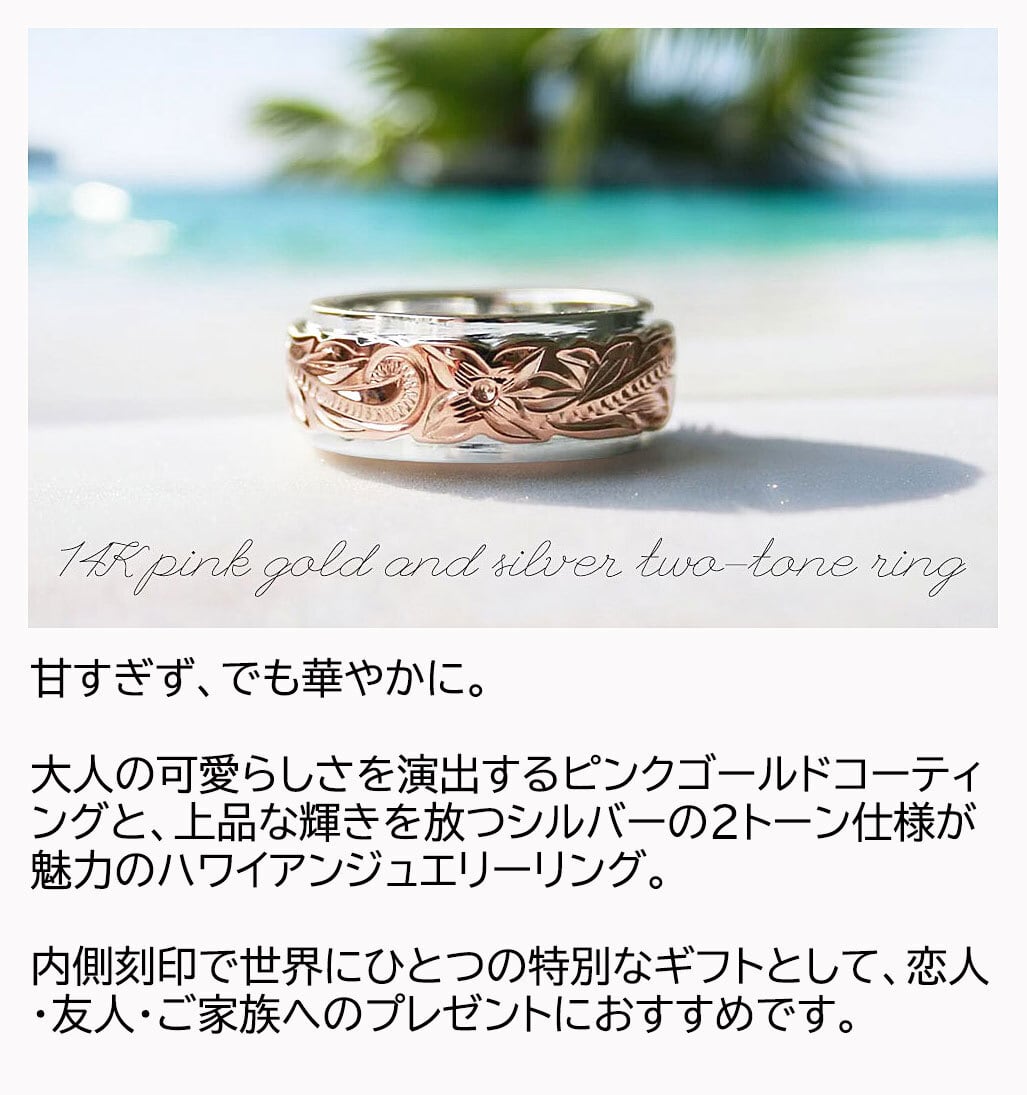 ハワイアンジュエリー リング 指輪 14Kピンクゴールド スクロール プルメリア 2トーンリング 指輪 楽園から届く