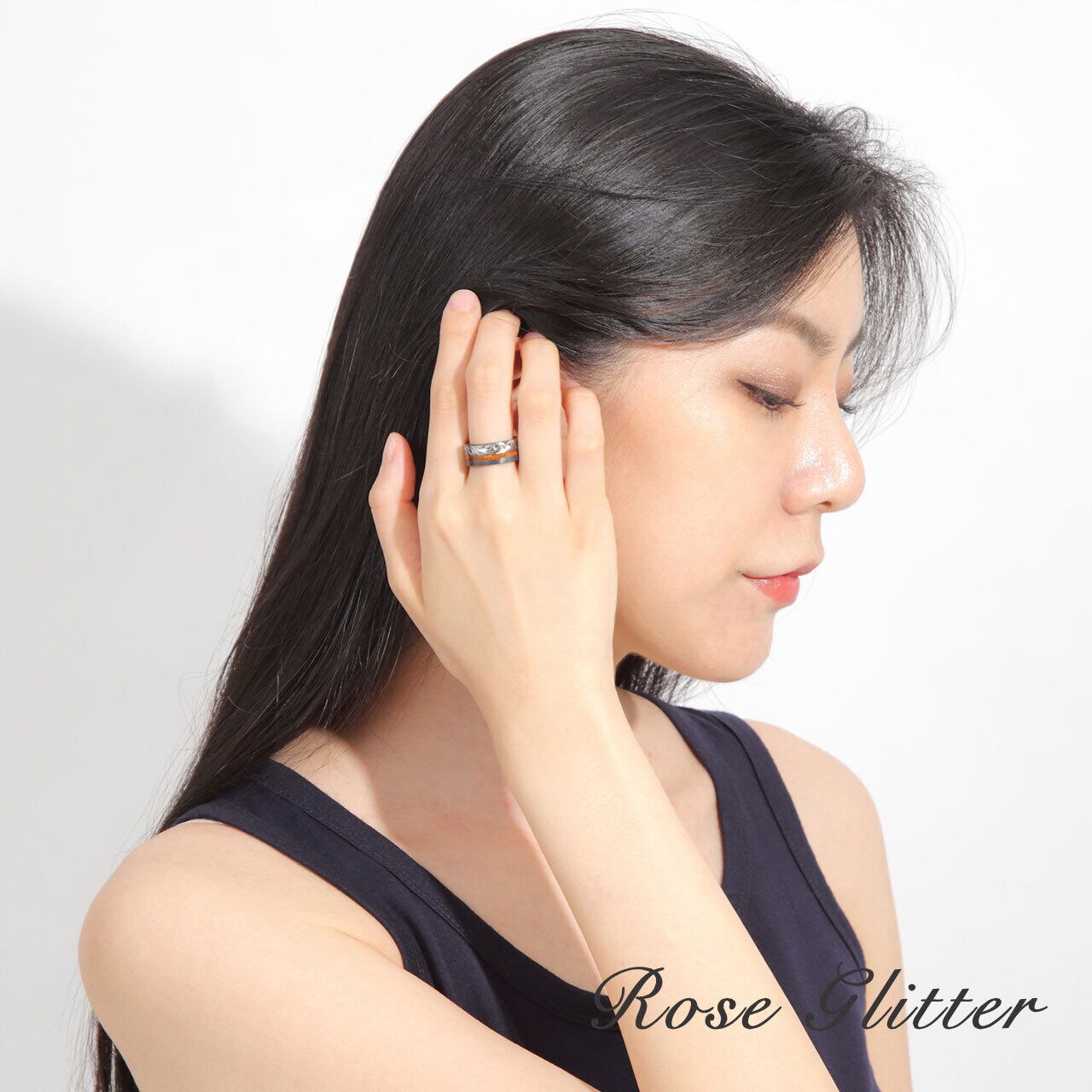 指輪 リング メンズ ブラックジルコニウム 8mm 黒 ハワイアンジュエリー フラット ハワイアンコアウッド レディース ペア 男性 おしゃれ
