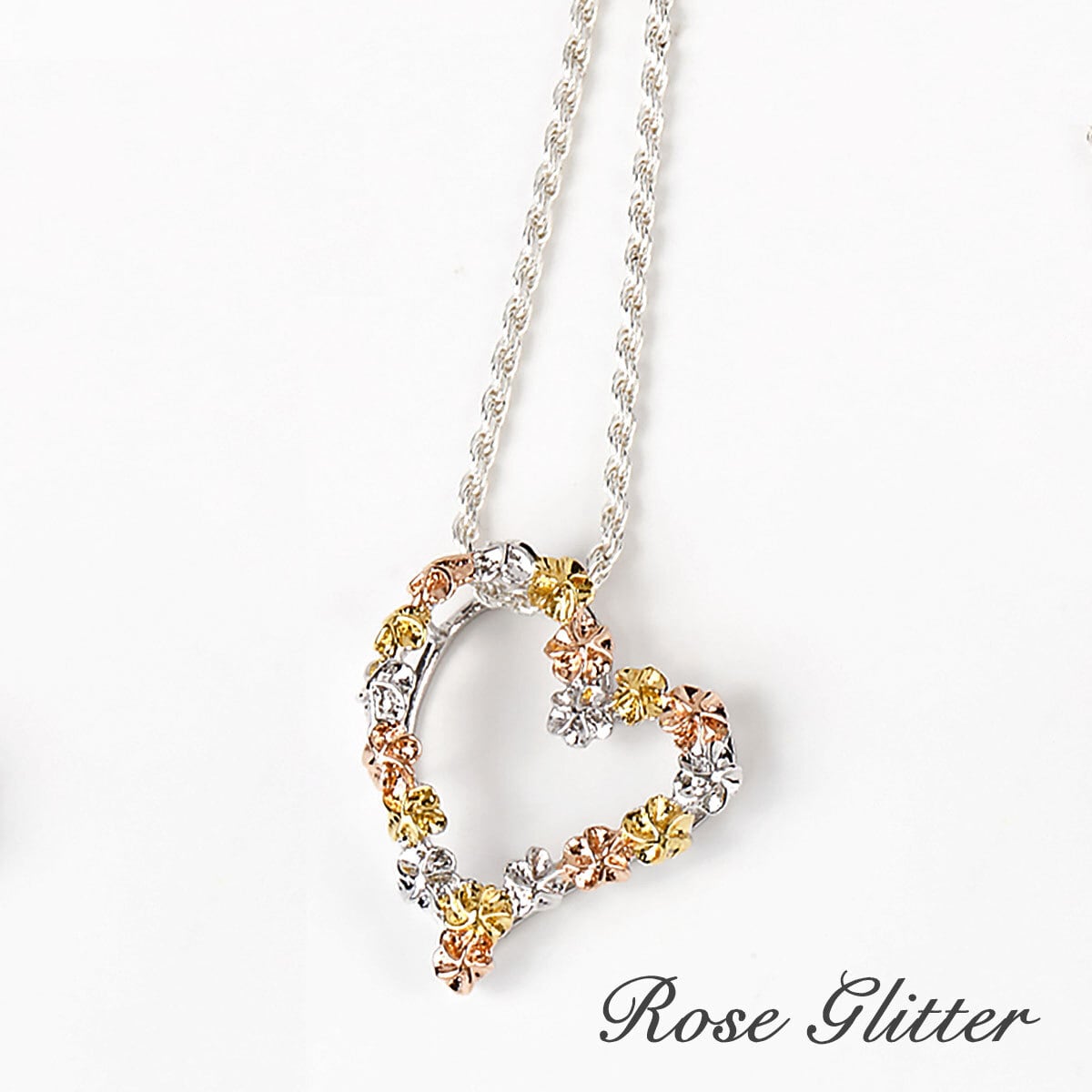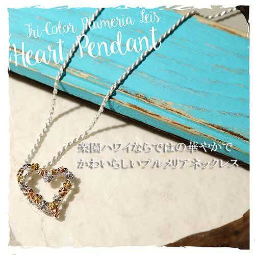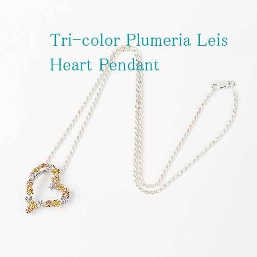 ネックレス ハワイアンジュエリー レディース ハート オープンハート プルメリア 選べるチェーン付 トリコロール 女性用 ペンダント かわいい 人気