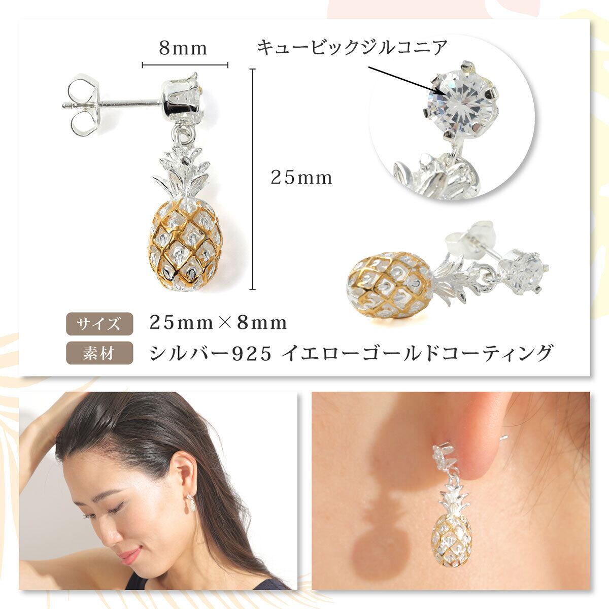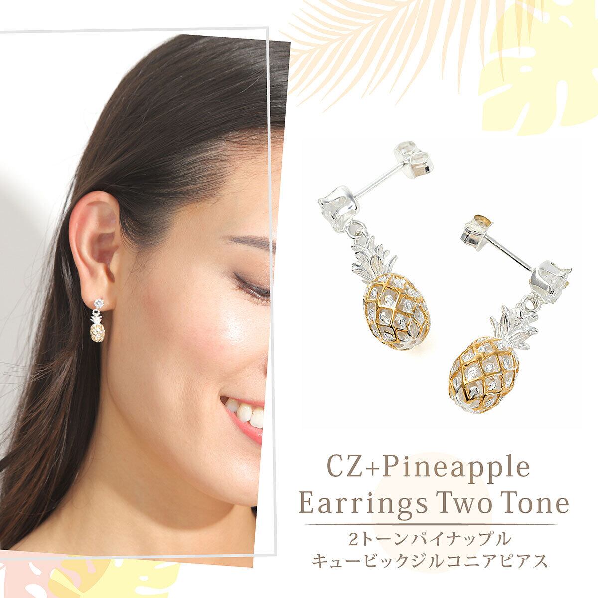 ピアス パイナップル レディース スタッドピアス ハワイアンジュエリー イエロー シルバー 2トーン キュービックジルコニア ゆらゆら かわいい