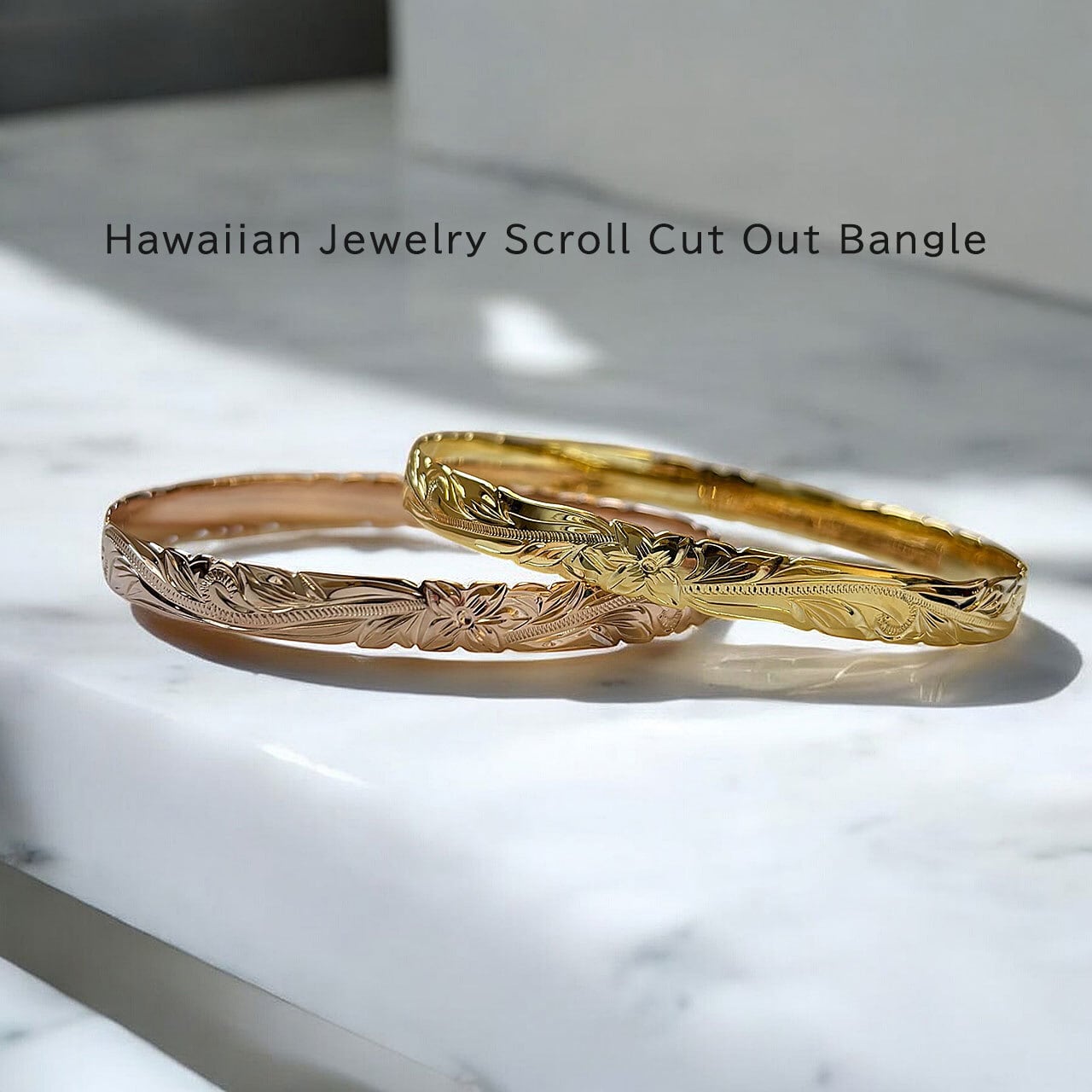 8mm バングル レディース ハワイアンジュエリー ピンクゴールド イエローゴールド スクロールカットアウト ピンク&イエロー